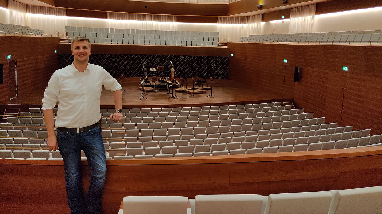 UPB-Alumnus Kristian Keuer studierte zunächst bis 2013 Wirtschaftswissenschaften an der Ruhr-Universität Bochum. Nach einigen Jahren als Sales und Account-Manager verschlug es ihn 2014 erneut an die Hochschule – diesmal jedoch an die Universität Paderborn. Dort studierte er Populäre Musik und Medien (POP) im Master. Im Rahmen seiner heutigen Tätigkeit im Bereich Kulturmanagement als Persönlicher Referent des Betriebsdirektors der Bochumer Symphoniker kann er sein Wissen aus den Bereichen Wirtschaft und Musik gezielt einsetzen.