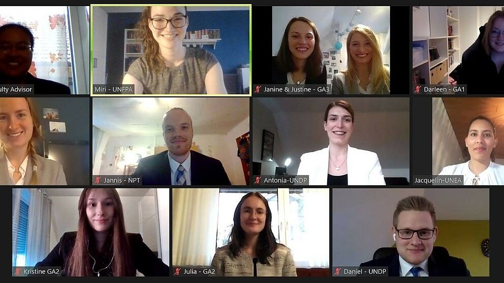 Foto (PaderMUN): Die elf Delegierten, mit denen Projektleiterin Denise Parkinson an der digital veranstalteten National Model United Nations Konferenz teilnahm, bewiesen vielfach ihr Können bei intensiven Verhandlungen zu verschiedenen Themen.