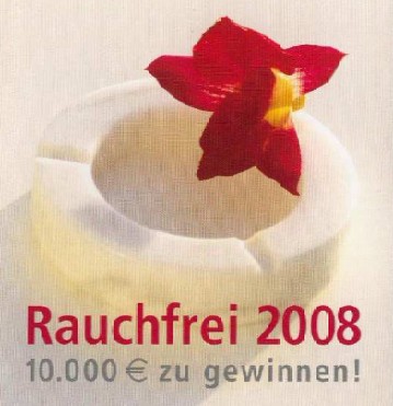 Die Auswertung der letzten Rauchstoppkampagne hat ergeben, dass 32% Prozent auch noch 12 Monate nach Ende der Aktion rauchfrei geblieben sind. Dieses Ergebnis ist ermutigend. Also versuchen Sie es! Machen Sie mit bei „Rauchfrei 2008“.