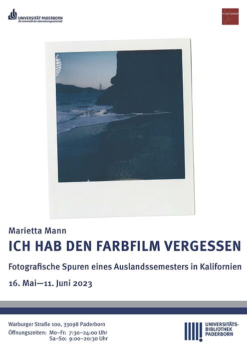 Vom 16. Mai bis 11. Juni präsentiert das Fach Kunst in der Universitätsbibliothek Paderborn die Ausstellung „Ich hab‘ den Farbfilm vergessen – Fotografische Spuren eines Auslandssemesters in Kalifornien“. In mehr als 100 Polaroids hat die Paderborner Kunststudentin Marietta Mann ihr Auslandssemester an der California University Stanislaus im Wintersemester 2022/23 mit einer Sofortbildkamera festgehalten. Alle Interessierten sind eingeladen, die Ausstellung dieser Fotografien zu den Öffnungszeiten der Bibliothek kostenlos zu besuchen (Montag bis Freitag von 7.30 Uhr bis 24 Uhr; Samstag und Sonntag von 9 bis 20.30 Uhr; an gesetzlichen Feiertagen geschlossen).