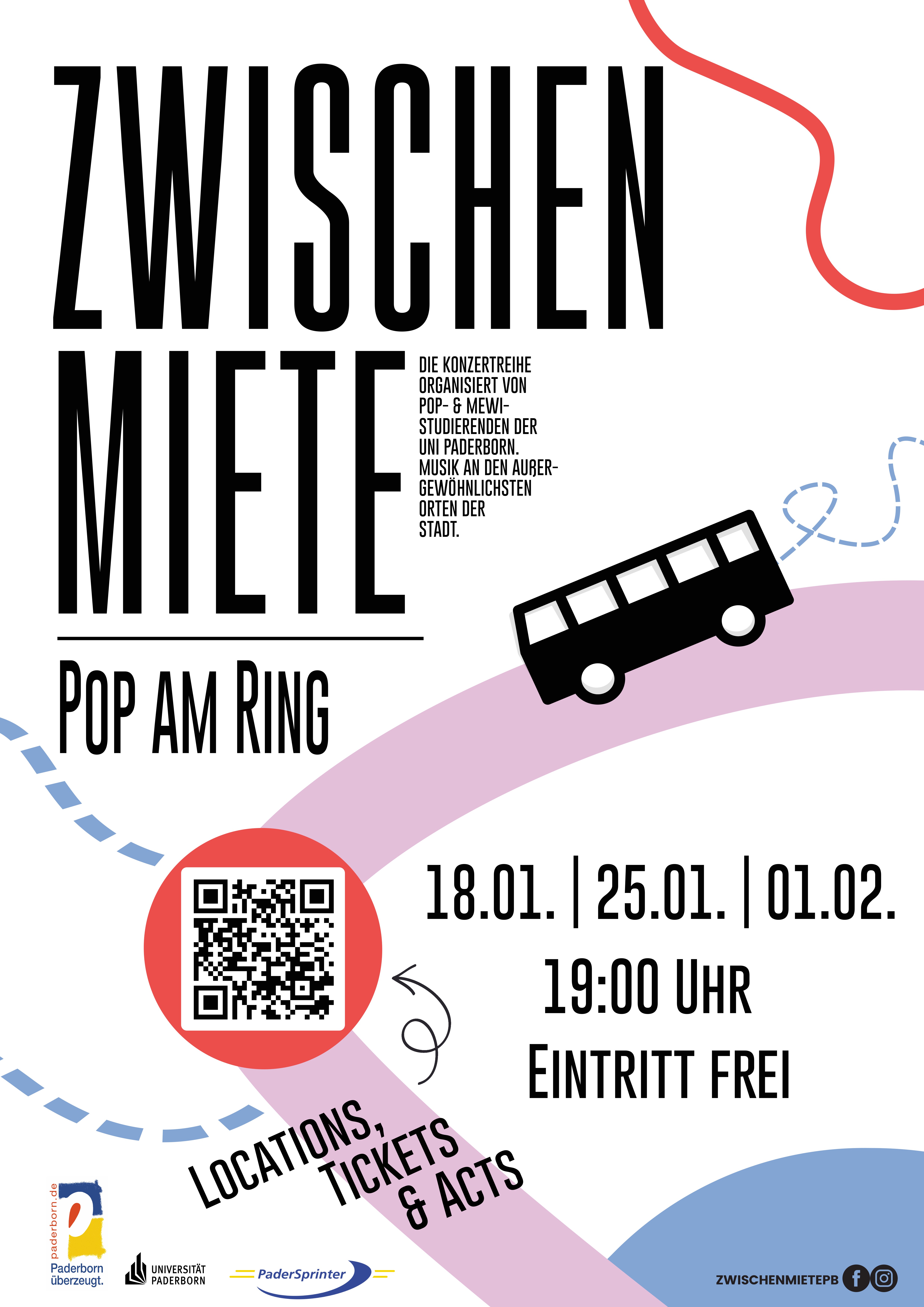 Once again this year, the "Zwischenmiete" event organised by students at Paderborn University will offer up-and-coming and established artists an extraordinary stage. Under the motto "Pop am Ring", a PaderSprinter articulated bus will be transformed into a concert venue on three Thursdays, 18 January, 25 January and 1 February, inviting you to a very special event in the city centre. The concerts start at 7 p.m., admission to the bus is from 6.30 p.m. each time. For the start of the event series, the bus will be prominently positioned on the cathedral/market square in Paderborn city centre. The locations for the second and third events will be announced on Instagram and Facebook one week before the event. The Paderborn student band "takeaways" will perform on the first concert evening with an appealing mix of garage/punk rock and quieter indie influences. In addition, the newcomer band "Amber" from Bielefeld will perform their music on the bus with a unique combination of wave, emo, shoegaze and post-punk.