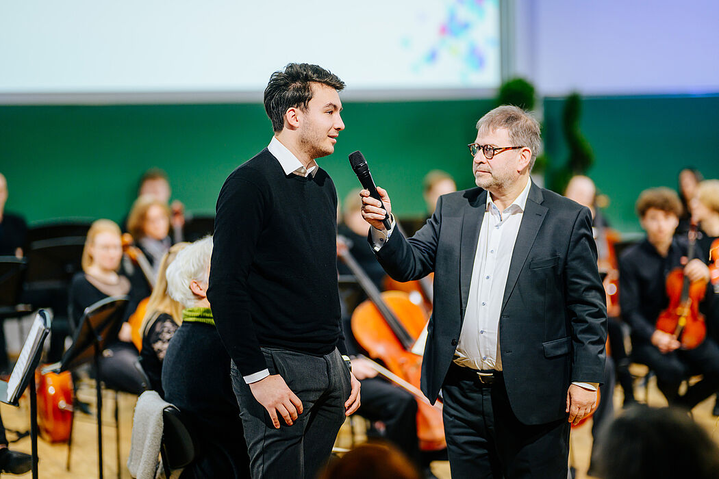 The New Year's reception was compered by Ulrich Lettermann from the Department of Music. The University Orchestra, conducted by Steffen Schiel, delighted the audience with music by Johann Sebastian Bach and Ludwig van Beethoven.