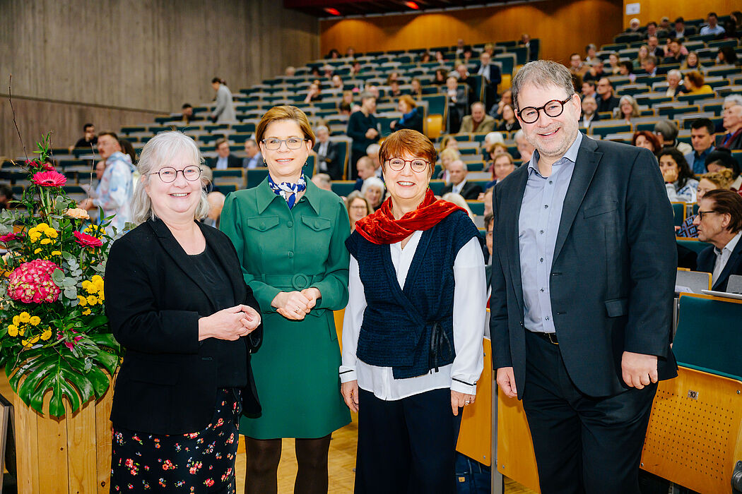 A festive start to a new academic year - on Sunday, 19 January, Paderborn University celebrated its traditional New Year's reception with around 400 guests from academia, business and politics. Prof Dr Birgitt Riegraf, President of the University, welcomed those present in the Auditorium maximum. The outgoing President, who will succeed Prof. Dr Matthias Bauer in office in April, did not look back on the past year as usual, but instead used a more communicative format with university members to provide an outlook on digitalisation at Paderborn University. However, a presentation with data and figures was available via a QR code - in keeping with the topic.