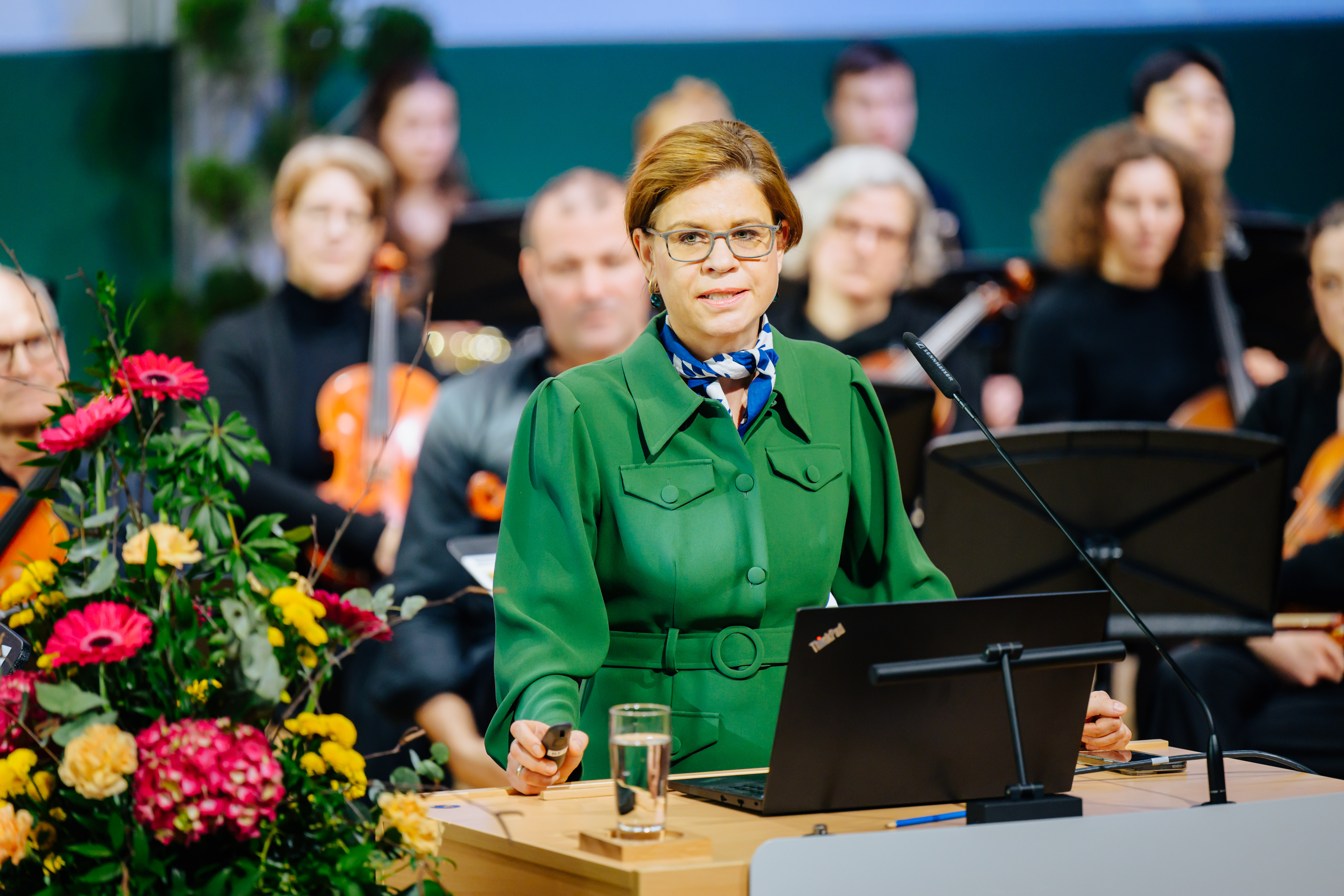 The New Year's Reception was hosted by Ulrich Lettermann from the Music subject area. The university orchestra, conducted by Steffen Schiel, delighted the audience with well-known film music pieces by Nino Rota and John Williams.