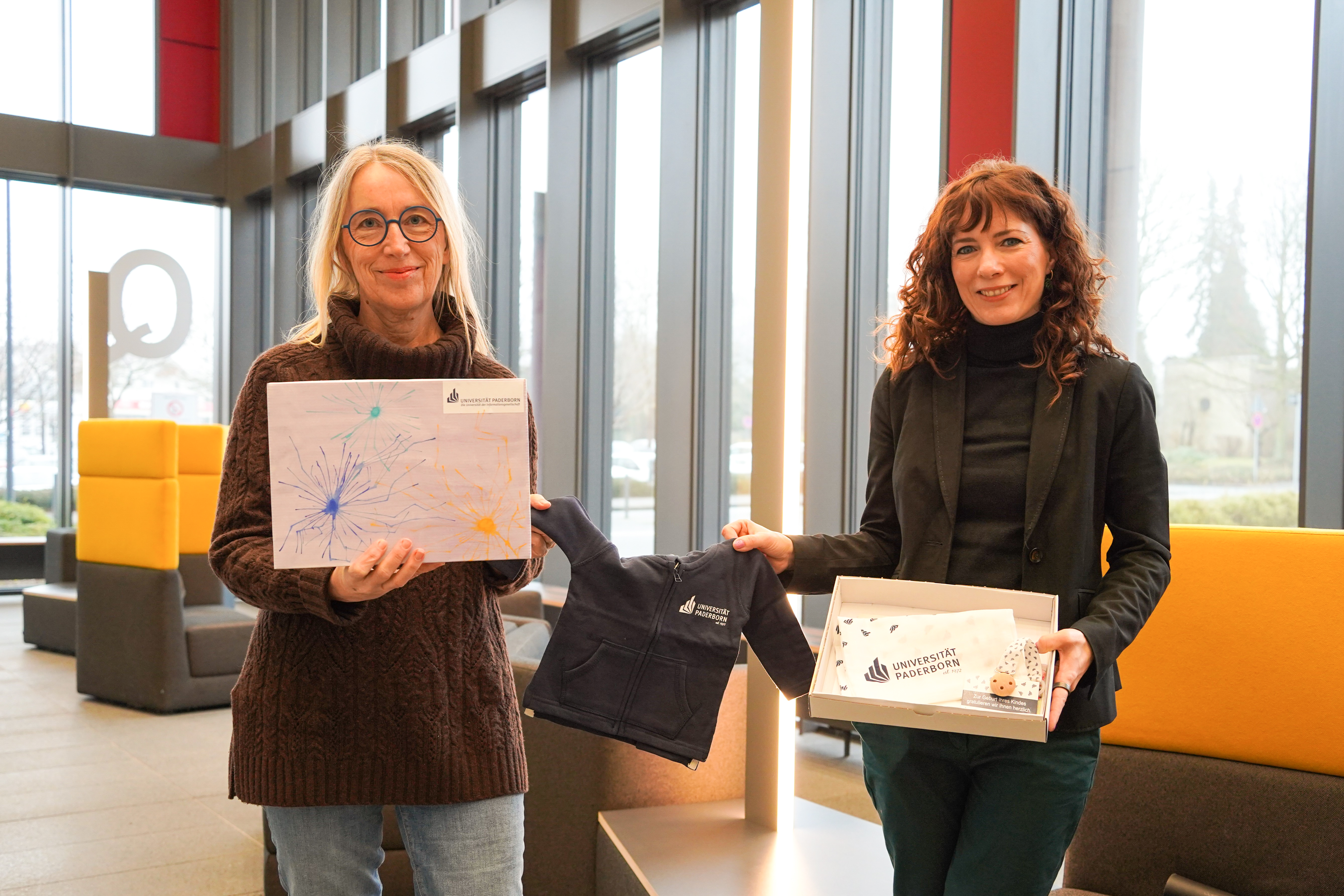 Paderborn University is once again emphasising its family-friendly focus: the popular parental packages for students and employees have been filled with new, high-quality content. The parcels, which are lovingly painted by the Paderborn University Kids (PUKi) from the university's emergency and short-term childcare centre, have been presented to young parents since 2008.