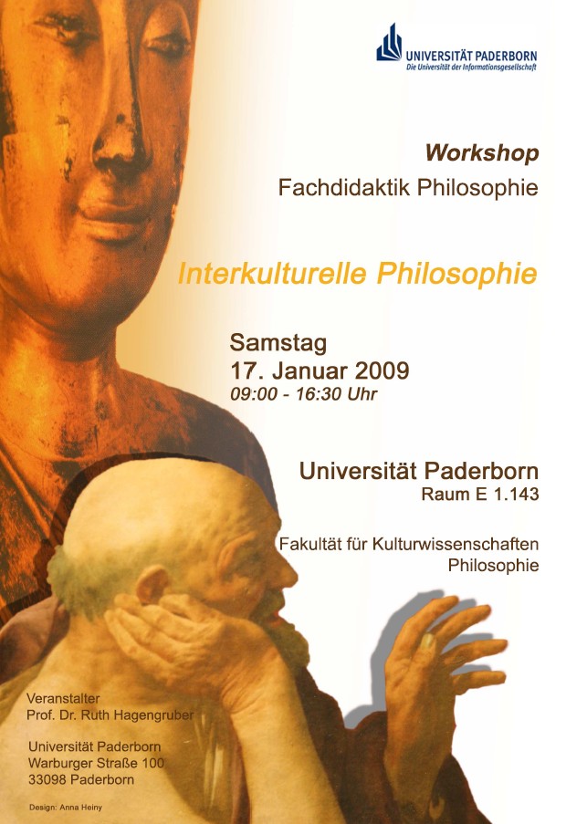 Das Fach Philosophie der Universität Paderborn führt unter Leitung von Prof. Dr. Ruth Hagengruber und Dr. Henning Peucker am Samstag, 17.1., einen Workshop über Interkulturelle Philosophie durch. Thema ist die immer häufigere Begegnung von Menschen mit sehr unterschiedlichen kulturellen Hintergründen. Diese Begegnungen würden in der Philosophie seit langem reflektiert, so die Organisatoren der Veranstaltung, zu der Interessierte herzlich eingeladen sind.