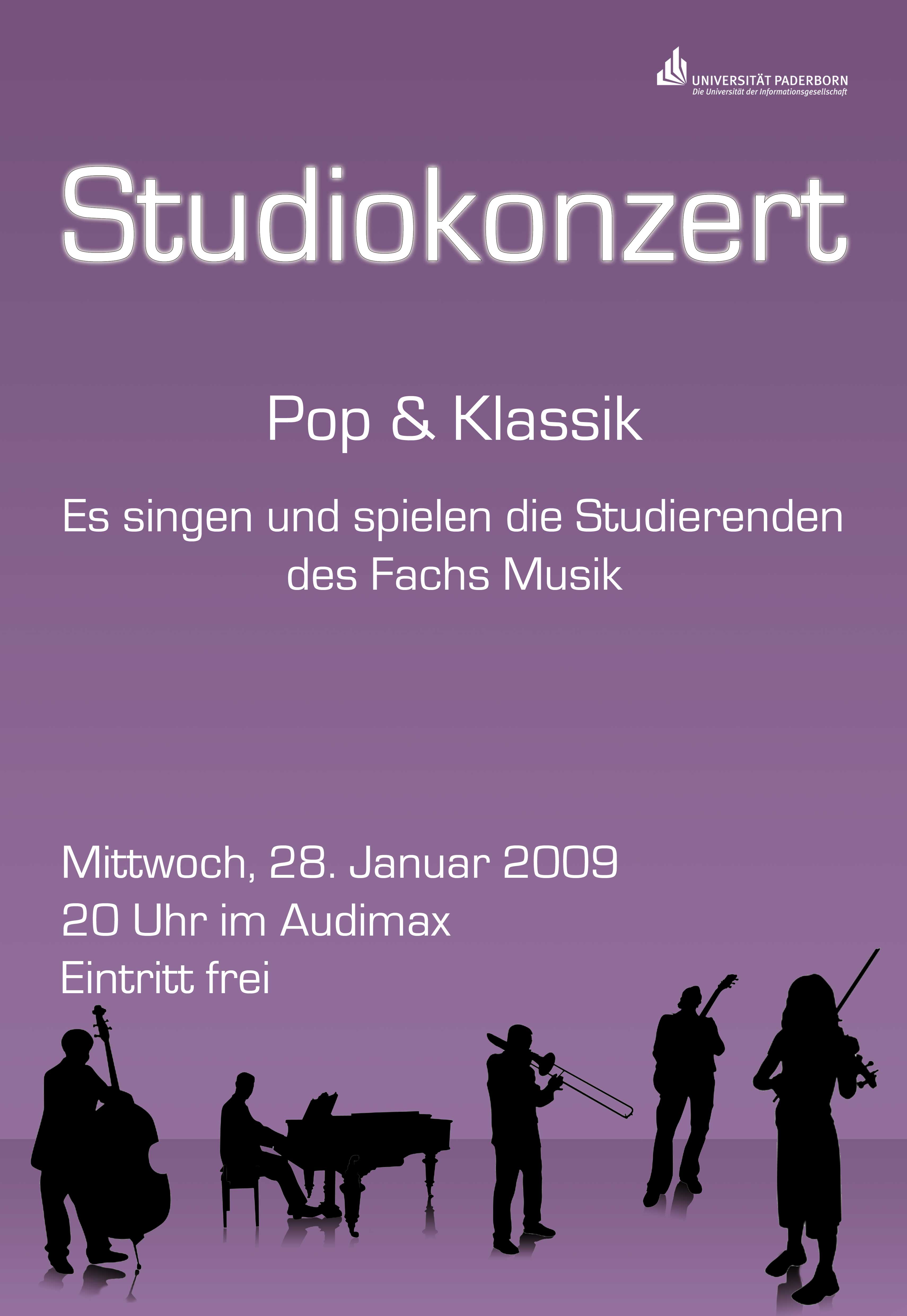 Am Mittwoch, 28.1., präsentieren sich um 20 Uhr im Audimax der Universität Studierende des Lehramts für Musik mit einem bunt gemischten Programm wieder der Öffentlichkeit. Die Darstellenden kennen sich gut in klassischen und popmusikalischen Stilrichtungen aus, was sich auch in der Vielfalt der ausgewählten Stücke des Studiokonzerts zeigt.