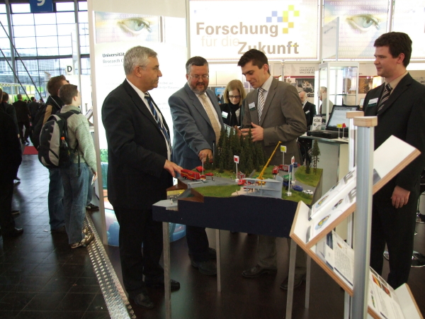 Prof. Dr.-Ing. Rainer Koch und sein Team präsentierten ihre Forschungsergebnisse bereits zum vierten Mal auf der CeBIT, diesmal auf dem Gemeinschaftsstand des Ministeriums für Innovation, Wissenschaft, Forschung und Technologie NRW.