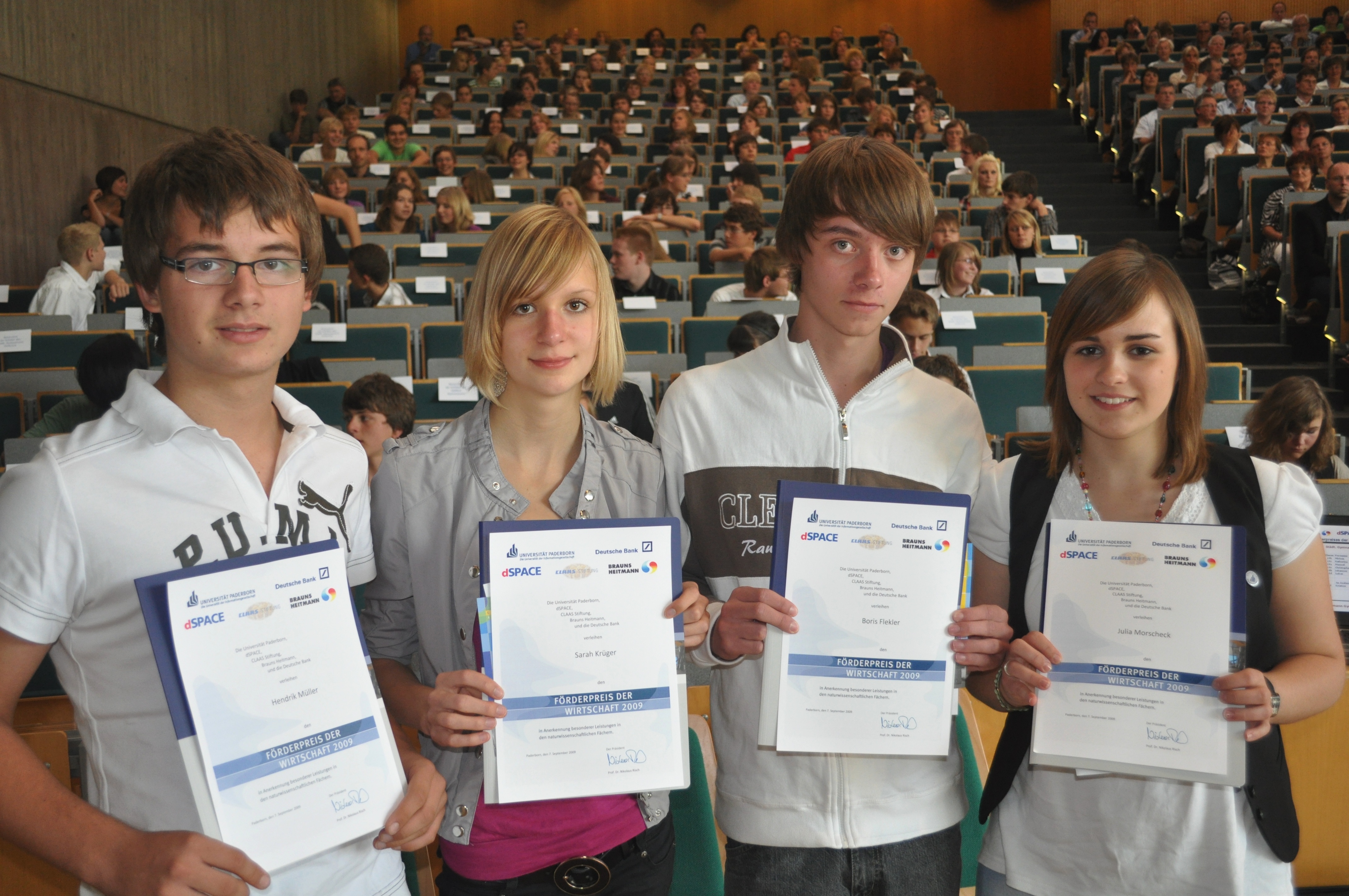 Die 15-Jährige nahm den Preis gemeinsam mit ihren gleichaltrigen Mitschülerinnen und Mitschülern Sarah Krüger, Boris Flekler und Hendrik Müller vom Warburger Hüffertgymnasium entgegen. Den Naturwissenschaften wollen die Forscher von morgen treu bleiben und ein Studium an der Universität ist für alle Vier „durchaus vorstellbar.“