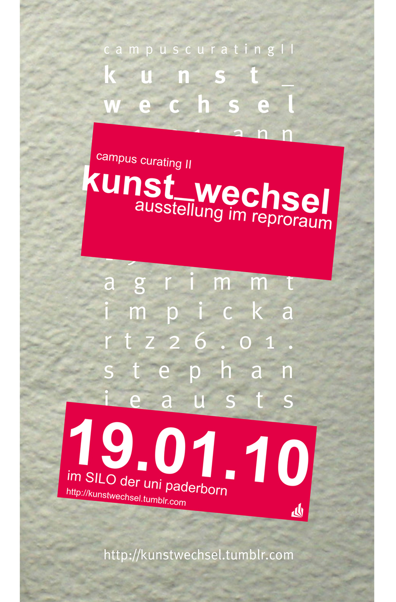 Lisa Grimm und Tim Pickartz, Studierende des Faches Kunst, laden alle Interessierten herzlich zum zweiten Kunst_Wechsel am 19.1. von 14 bis 16 Uhr in den Raum SU.105 des Kunstsilos ein.