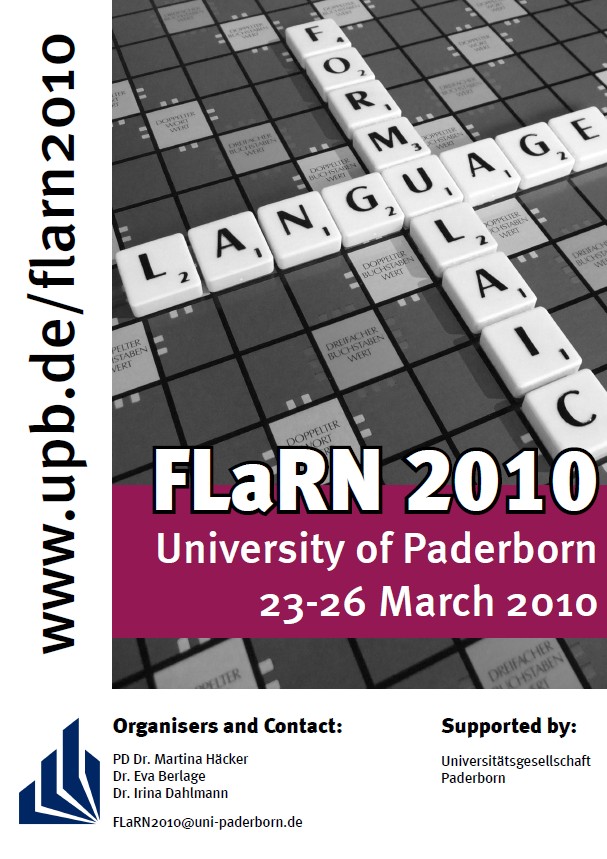 Die Konferenz richtet sich an Wissenschaftler und Wissenschaftlerinnen, die auf dem Gebiet der formelhaften Sprache arbeiten. Dies beinhaltet unterschiedliche Disziplinen der Sprachwissenschaft wie Spracherwerb, historische Linguistik, Psycholinguistik und sprachliche Variation. Informationen im Internet: www.upb.de/flarn2010.
