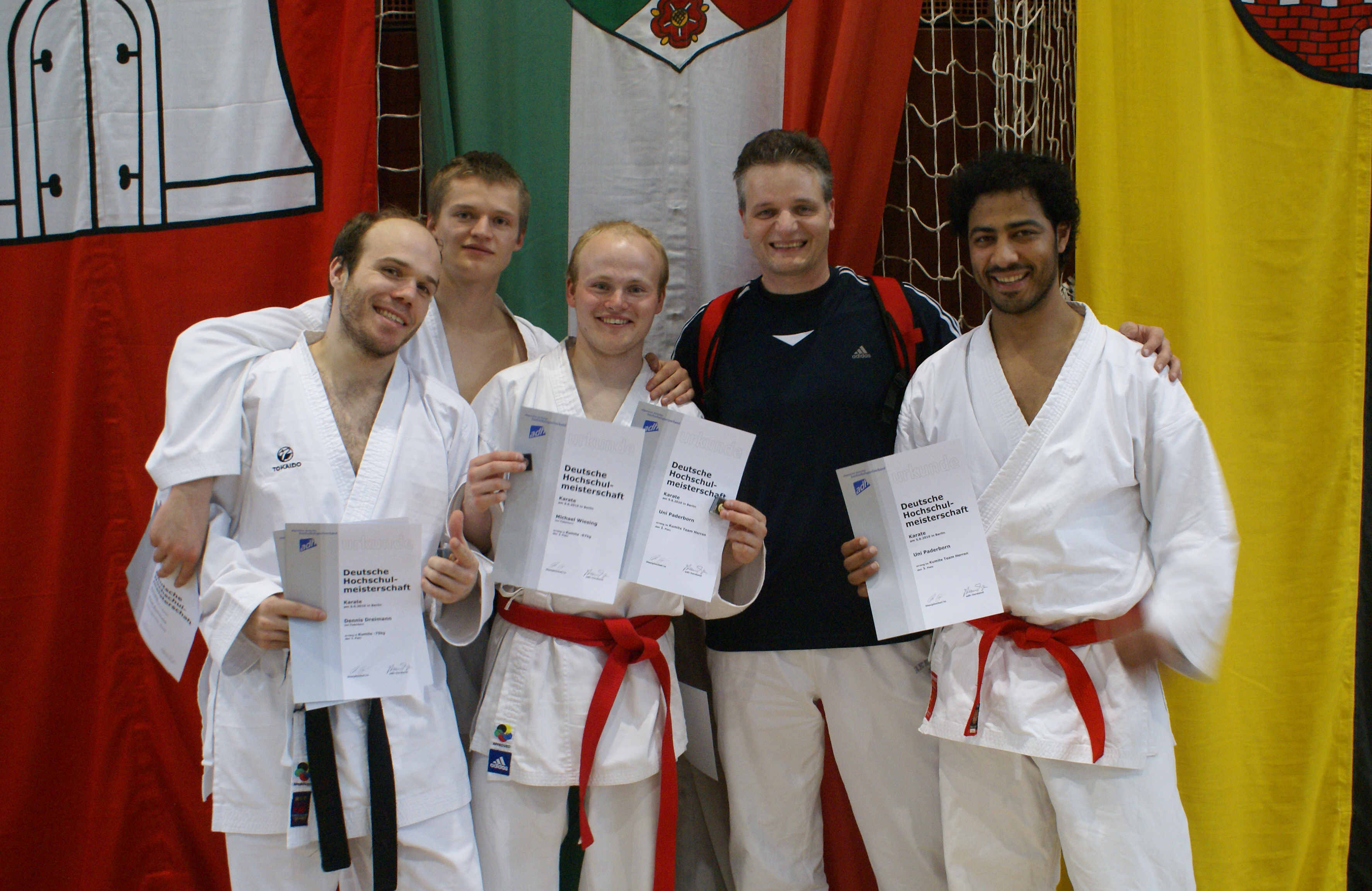 Die Universität Paderborn gewinnt 2010 die Deutschen Hochschulmeisterschaften im Karate in der Besetzung Dennis Dreimann, Paul Eichwald, Othmane Rhandor und Michael Wiesing, die im Teamwettbewerb dann die goldene ADH-Ehrennadel in Empfang nehmen konnten.