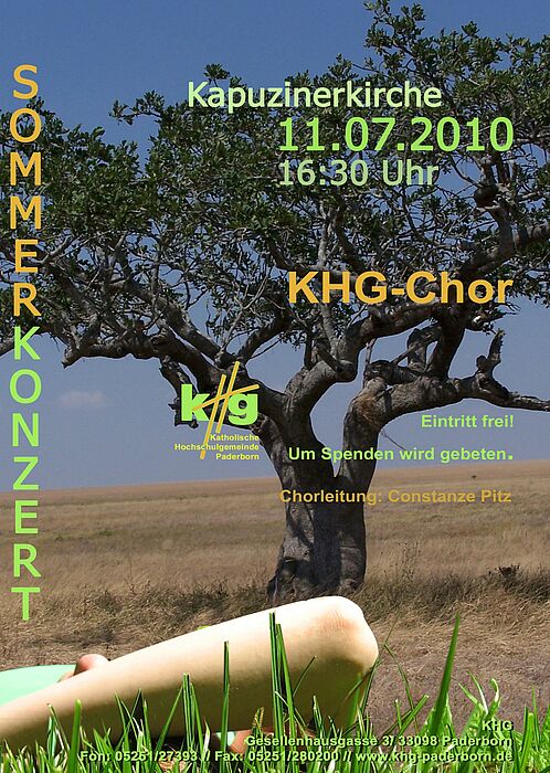 Der Chor der Katholischen Hochschulgemeinde (KHG) lädt auch in diesem Jahr wieder alle Interessentinnen und Interessenten zu seinem Sommerkonzert am 11. Juli, 16.30 Uhr, in die Kapuzinerkirche in Paderborn ein.
