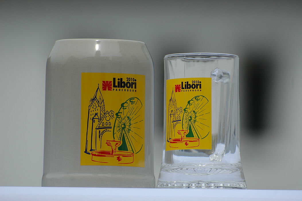 Zum ersten Mal in der langen Geschichte des Libori-Bierbrunnens wird in diesem Jahr ein Motiv einer Paderborner Kunststudentin die Gläser und Krüge zieren. Kristin Bardehle hat mit ihrer grafischen Komposition die Säulen des Liborifestes umgesetzt: Der Domturm steht für den kirchlichen Ursprung, das Riesenrad für die Kirmes. Dazugefügt hat sie den Rathausbrunnen, der in diesem Jahr zu Libori eine besondere Rolle spielt, als Symbol für den Bierbrunnen. Diese drei grafischen Elemente, ergänzt um den Pfau als Libori-Symbol und den besonders für Sammler wichtigen Schriftzug „Libori Paderborn 2010“, stehen auf gelbem Grund und werden als vierfarbiger Druck auf insgesamt 3.800 Gläser geprägt: 500 Longdrink-Gläser (0,2 Liter), 1.600 Glas-Seidel mit Henkel (0,2 Liter) und 2.700 Steinkrüge (0,5 Liter).