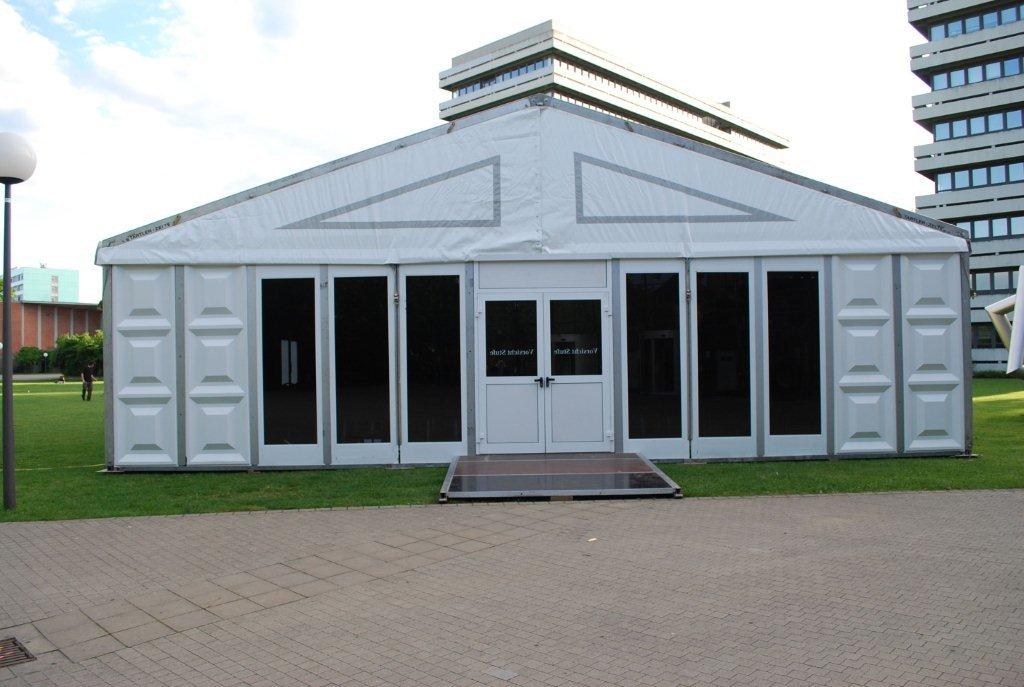 Die vier Zelte werden rechtzeitig vor dem Semesterbeginn auf der Rasenfläche in der Nähe des Audimax errichtet. Dort finden jeweils rund 80 Personen Platz. Die festen Zelte verfügen über Kassettenwände und über einen festen Boden, der mit Teppich belegt ist. Sie werden beheizt, belichtet und mit Strom versorgt. Für die Dozenten stehen Leinwand, Beamer, Tafel und Mikrofon zur Verfügung. Die Möblierung für die Seminarteilnehmer erfolgt mit Tischen und Stühlen. Ähnliche Zelte werden auch ganzjährig für Ausstellungen und Messen verwendet.