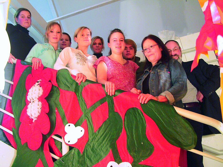 In den vergangenen Wochen haben Studentinnen der Universität Paderborn unter Leitung von Professorin Dorothea Reese-Heim im Rahmen ihrer fachpraktischen Examensprüfung "Textilgestaltung" diese mittelalterliche Vorstellungen von Pflanzen, Tieren und Mineralien auf Fahnen gebannt. "Drei Wochen habe ich jeden Tag genäht", erzählt Maren Voigt, die die Abbildung der Kamille in einen Traum aus weißem Segelstoff mit Applikationen, die im typischen Kamillegelb umsäumt sind, verwandelt hat. Die Signaturenlehre und Heilslehre des Mittelalters wurde zum Ideengeber für die Entwicklung der plakativen Stoffbahnen.