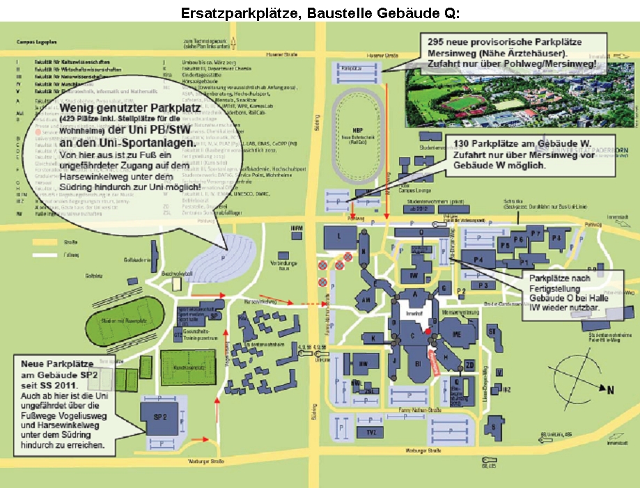 Ab Donnerstag, 23. Februar 2012, wird die Baustelle für das neue Institutsgebäude Q im Rahmen des Hochschulmodernisierungsprogramms eingerichtet. Es wird um Verständnis gebeten, dass diese Baumaßnahme nicht ganz ohne Beeinträchtigungen realisierbar ist.