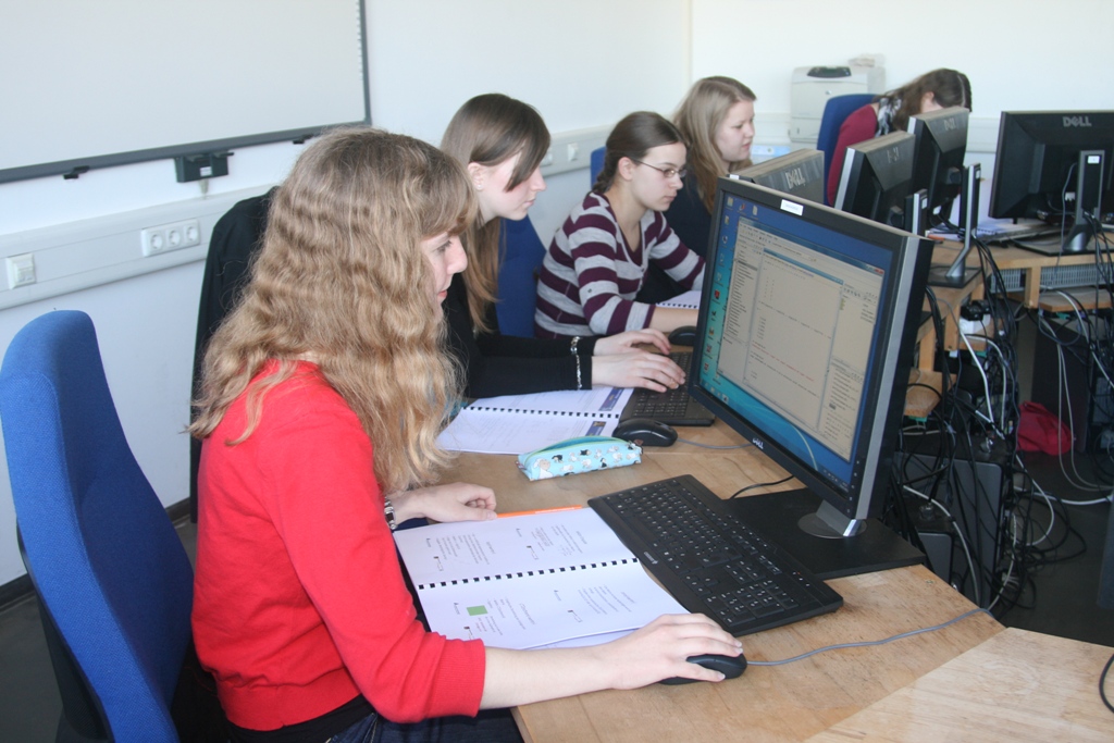 Im zweiten Teil des Workshop konnten die Schüler selbst am Computer erste praktische Erfahrungen mit der Computertomographie sammeln. Sie erzeugten Computergraphiken, die dann von anderen Workshopteilnehmern zu rekonstruieren waren. Die erworbenen Kenntnisse wurden zum Schluss in einem Wettbewerb getestet, wobei es für die Besten Knobelspiele als Preise gab.