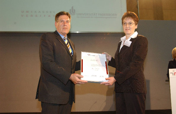 Berlin-Paderborn, Mitteilung, 19.06.2006. Die Universität Paderborn wurde bereits am 22.11.2005 als erste Universität in Nordrhein-Westfalen mit dem Grundzertifikat zum Audit familiengerechte Hochschule von der Beruf & Familie gGmbH – einer gemeinnützigen Initiative der Hertie-Stiftung in Frankfurt – ausgezeichnet. Die Urkunde wurde nun vergangene Woche am 14. Juni 2006 in Berlin verliehen. Als Vertreterinnen der Universität Paderborn nahmen Irmgard Pilgrim, Gleichstellungsbeauftragte sowie Dezernentin Dr. Martina Gerdes-Kühn in Vertretung des Kanzlers an den Feierlichkeiten in Berlin teil.
