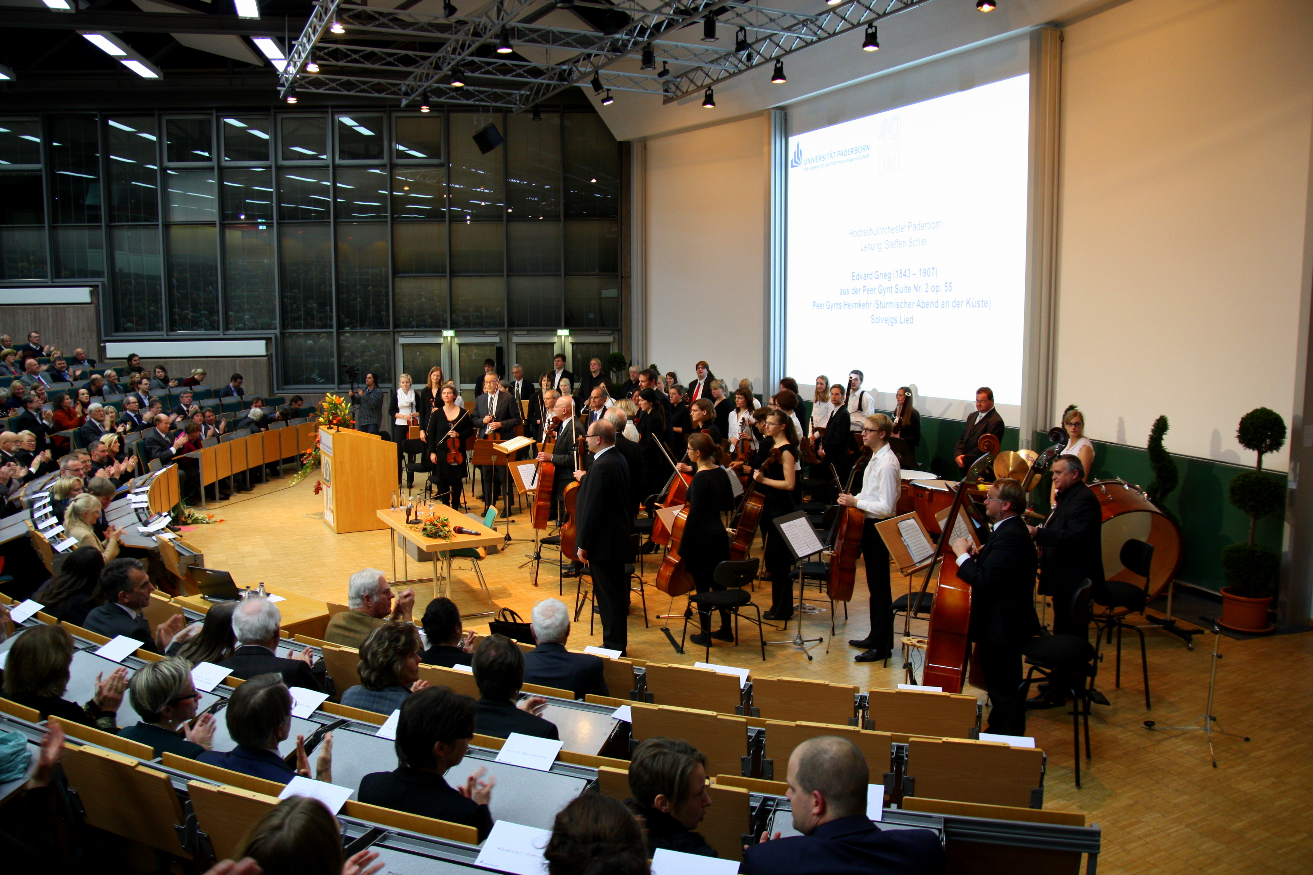 Musikalisch umrahmt wurde die Verleihung der Ehrendoktorwürde vom Hochschulorchester der Universität Paderborn unter der Leitung von Steffen Schiel.