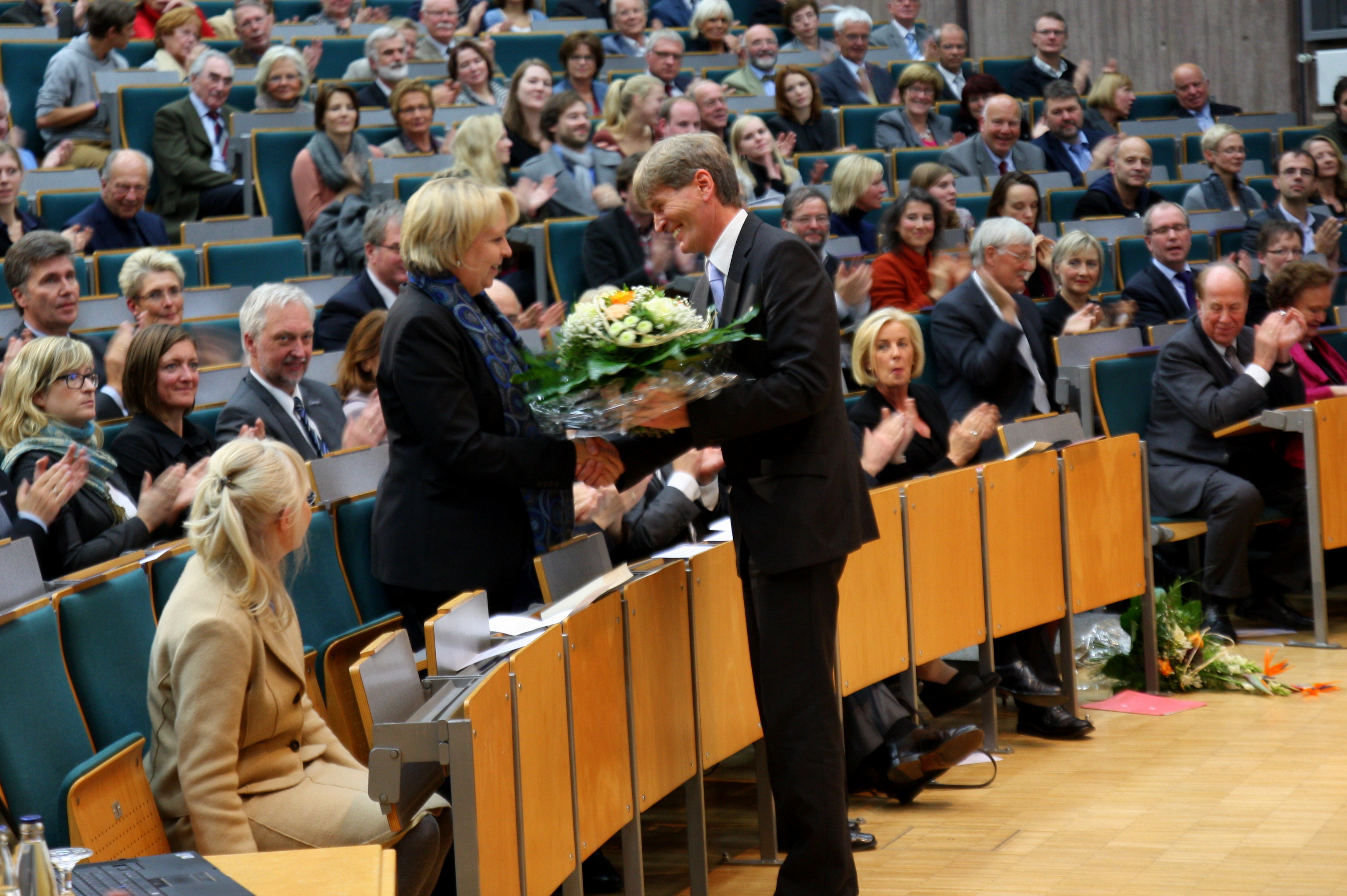 Seit der Gründung der Fakultät für Kulturwissenschaften durch Zusammenschluss der alten Fachbereiche 1 bis 4 im Jahre 2002, also vor 10 Jahren, ist dies erst die dritte Ehrung dieser Art an der Universität Paderborn. "Wir ehren Sie heute nicht nur als herausragende Literatin, sondern auch als unermüdliche Kämpferin für Selbstbestimmtheit, Menschenwürde und Humanität. Wir ehren in Ihnen einen Menschen, der in besonderer Weise Paderborn und seiner Universität verbunden ist", sagte der Dekan der Fakultät für Kulturwissenschaften, Prof. Dr. Volker Peckhaus.