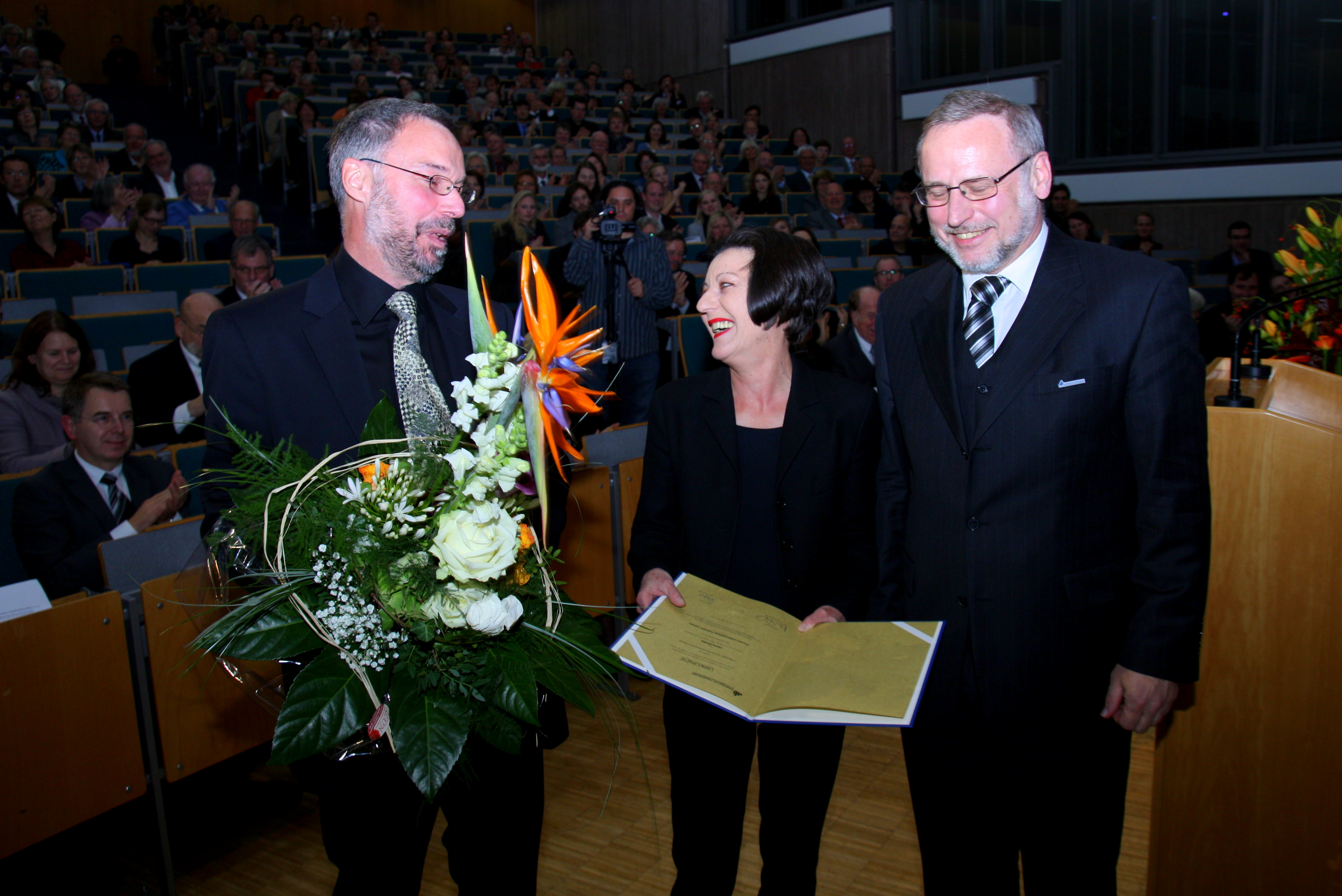 "Die Fakultät für Kulturwissenschaften der Universität Paderborn verleiht die Ehrendoktorwürde an Frau Herta Müller in Anerkennung ihrer herausragenden künstlerischen Leistung, ihres Einsatzes für Freiheit und Menschenrechte und ihrer langjährigen Verbundenheit mit der Universität Paderborn", sagte der Paderborner Literaturwissenschaftler Prof. Dr. Norbert Otto Eke in seiner Laudatio auf Herta Müller. Die deutsch-rumänische Schriftstellerin nehme etwa mit ihren innovativen Sprachbildern einen herausragenden und unverwechselbaren Platz in der deutschen Gegenwartsliteratur ein. Zum anderen habe Herta Müller sich immer gegen jede Form von Diktatur und Geschichtsvergessenheit und für Freiheit und Menschenrechte eingesetzt, hob Eke hervor.