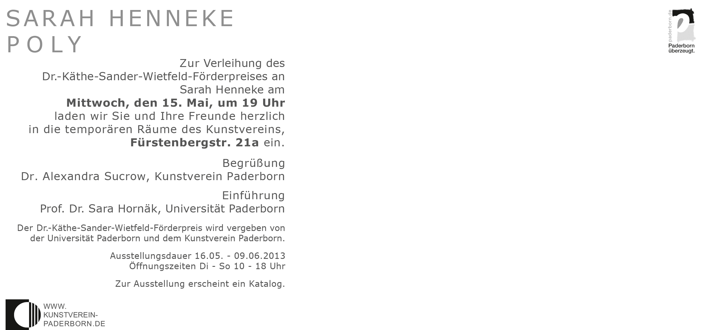 Der Dr.-Käthe-Sander-Wietfeld-Förderpreis wird vergeben von der Universität Paderborn und dem Kunstverein Paderborn.