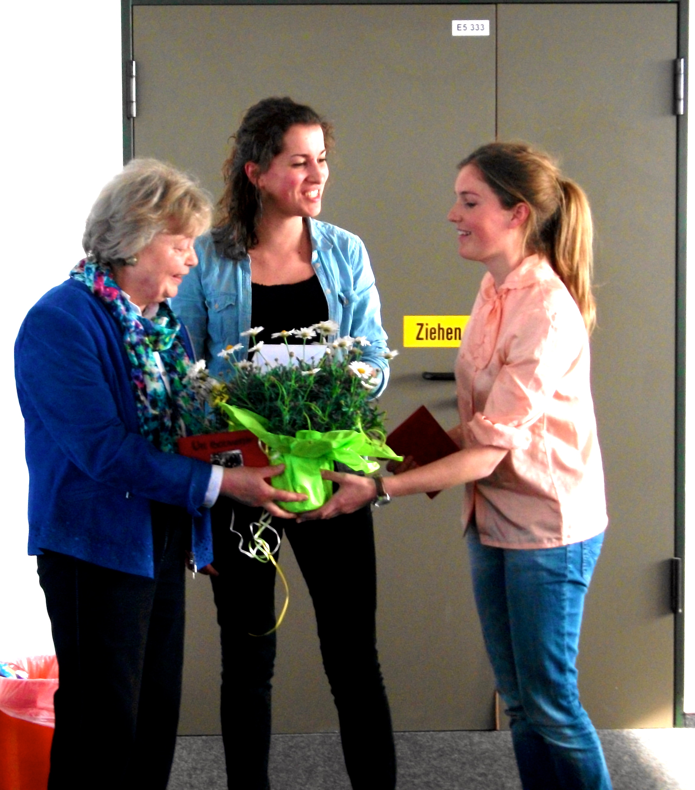Fotos: Die französischen und deutschen Studierenden des binationalen Studiengangs „Europäische Studien“ bedanken sich bei Maria Lis für ihre großzügige Geste.