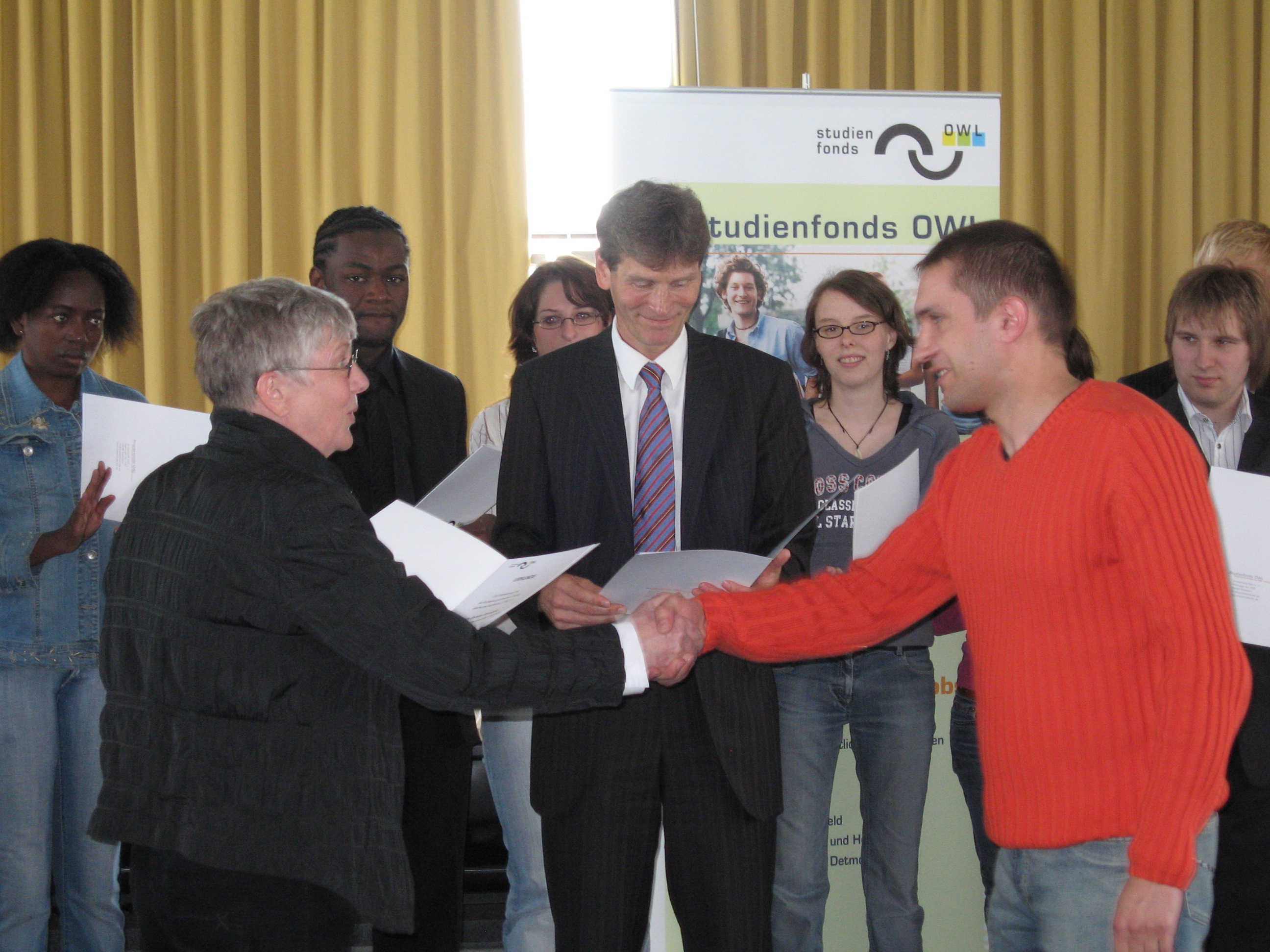 Der Studienfonds OWL e.V. beendet erfolgreich die zweite Bewerbungsrunde: Insgesamt 31 neue Stipendiaten wurden in einer Feierstunde an der Universität Bielefeld am 19. April 2007 ausgezeichnet. Die Stipendien gingen an besonders begabte und auch besonders bedürftige Studierende der Universitäten Bielefeld und Paderborn, der Fachhochschulen Lippe/Höxter und Bielefeld sowie der Hochschule für Musik in Detmold.