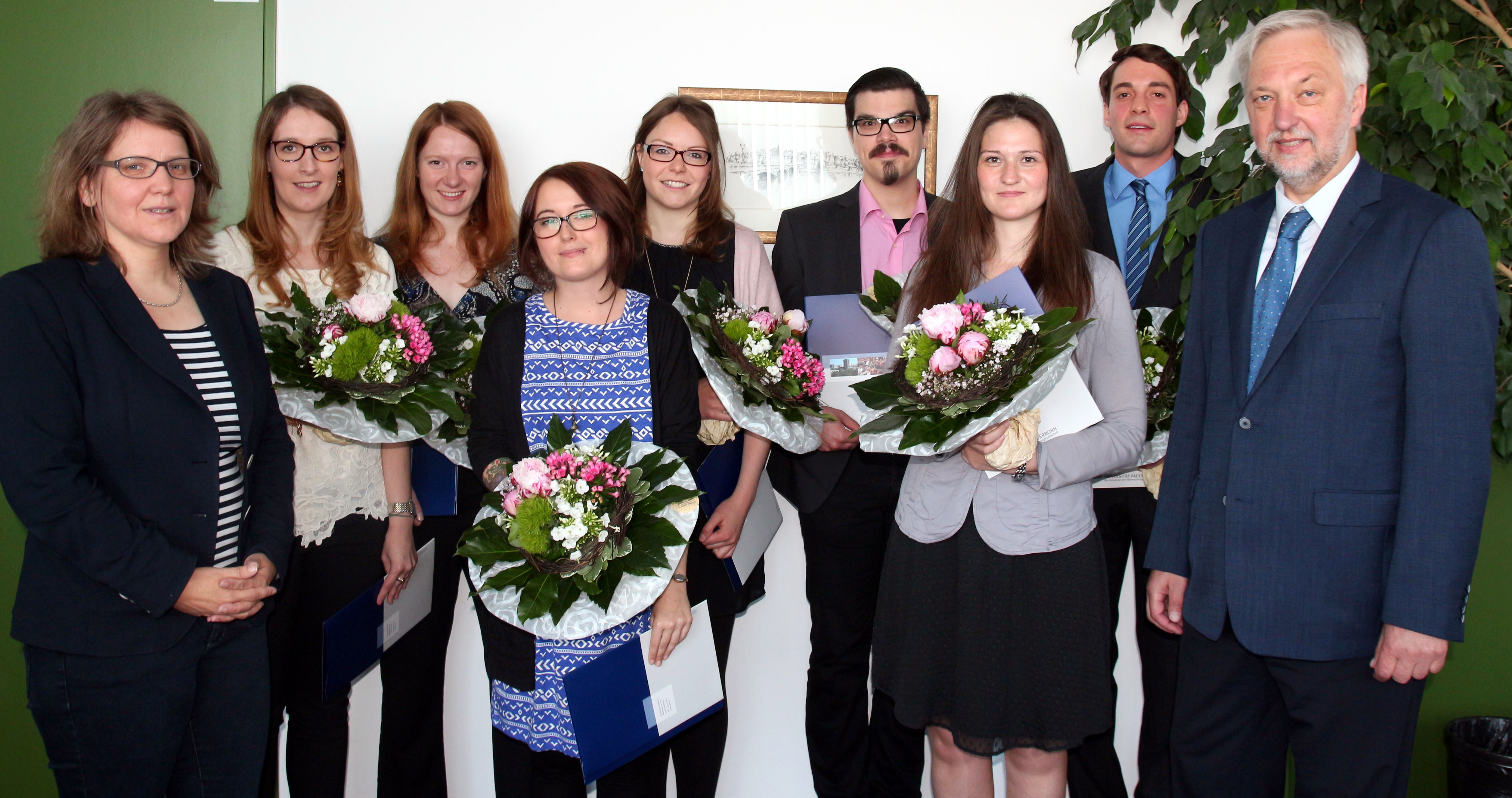 Abschlussstipendien erhielten Ludmila Peters, Fakultät Kulturwissenschaften, für „Interkulturalität und Religion in der deutschsprachigen Gegenwartsliteratur“, Sandra Lang, Fakultät für Kulturwissenschaften, mit dem Thema „Das didaktische Potential von Kriminalliteratur für den Französischunterricht“ sowie Jochen Ortmeyer, Fakultät für Naturwissenschaften, für seine „Synthese und Charakterisierung von Ruthenium-basierten Elektronentransfersystemen mit Kuper-Akzeptor-Einheit“.