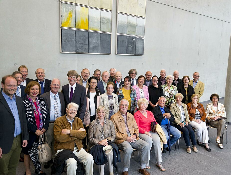 „Die Universität wächst unaufhörlich und wird immer besser“, betonte Prof. Dr. Artur Goldschmidt, Vorstandsmitglied des Bürgervereins, gleich zu Beginn. Christoph Schön, Leiter der Stabsstelle Hochschulnetzwerk und Fundraising, begrüßte den Bürgerverein – auch im Namen von Präsident Prof. Dr. Wilhelm Schäfer, der zeitgleich Bundesforschungsministerin Prof. Dr. Johanna Wanka empfing. Auch Präsident a. D. Prof. Dr. Nikolaus Risch, noch bis Februar 2015 im Amt, hieß den Bürgerverein willkommen und berichtete über das vergangene Hochschuljahr.