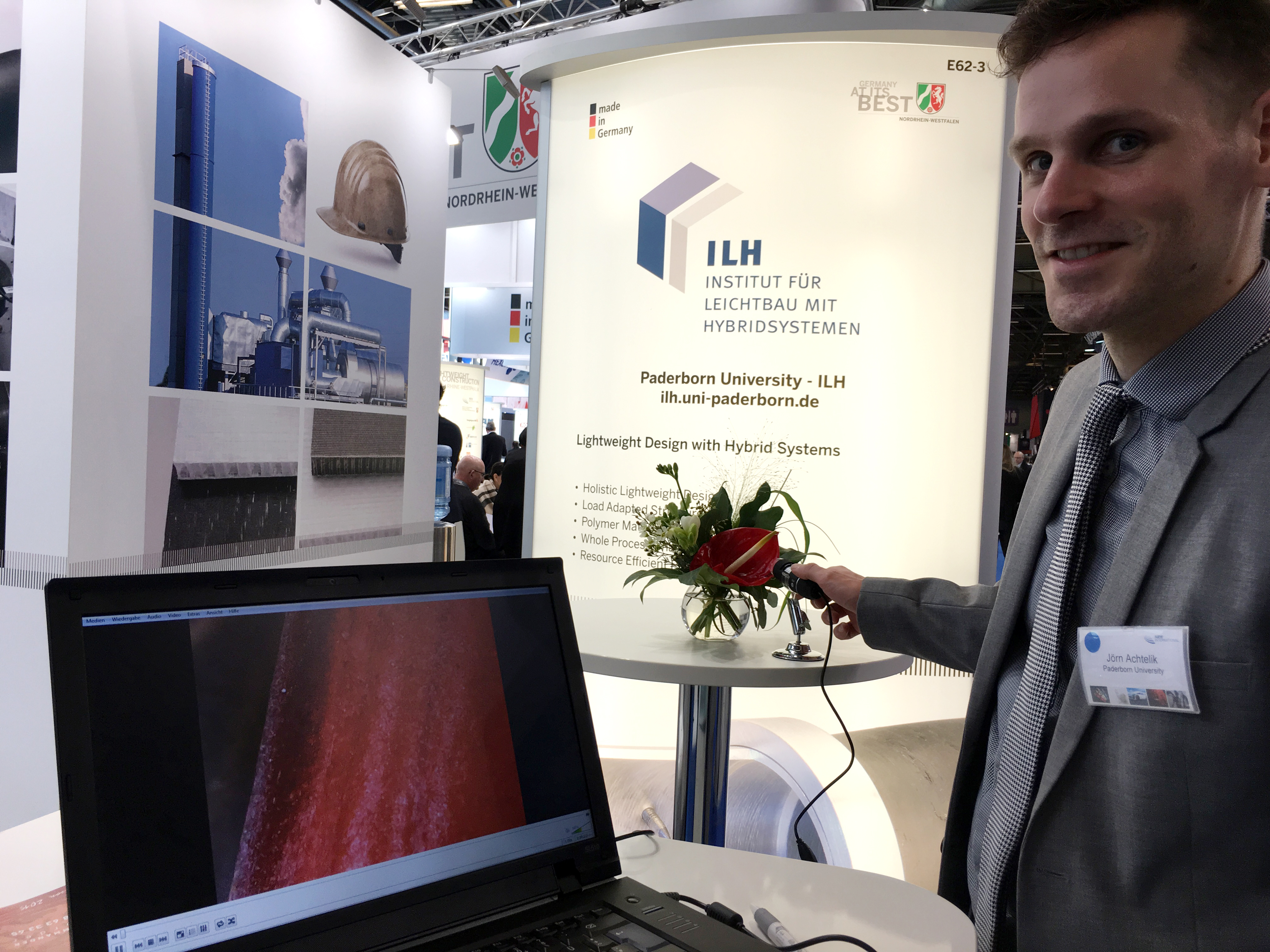 Auf der vom 8. bis zum 10. März in Paris stattfindenden Fachmesse „JEC World“ präsentiert das Institut für Leichtbau mit Hybridsystemen (ILH) und das NRW Fortschrittskolleg „Leicht – Effizient – Mobil“ (FK LEM) auf dem Gemeinschaftsstand des Landes Nordrhein-Westfalen aktuelle Forschungsergebnisse auf dem Gebiet des Hybridleichtbaus. Gezeigt wird neben Exponaten und Bauteilen aus aktuellen Forschungsprojekten der am ILH beteiligten Arbeitsgruppen auch ein Gemeinschaftsprojekt der Kollegiat_innen des Fortschrittskollegs. Die „JEC World“ ist die weltweit größte Fachmesse im Bereich der Faserverbundwerkstoffe. In diesem Jahr werden von ca. 1.300 Ausstellern rund 35.000 Fachbesucher aus über 100 Ländern erwartet.