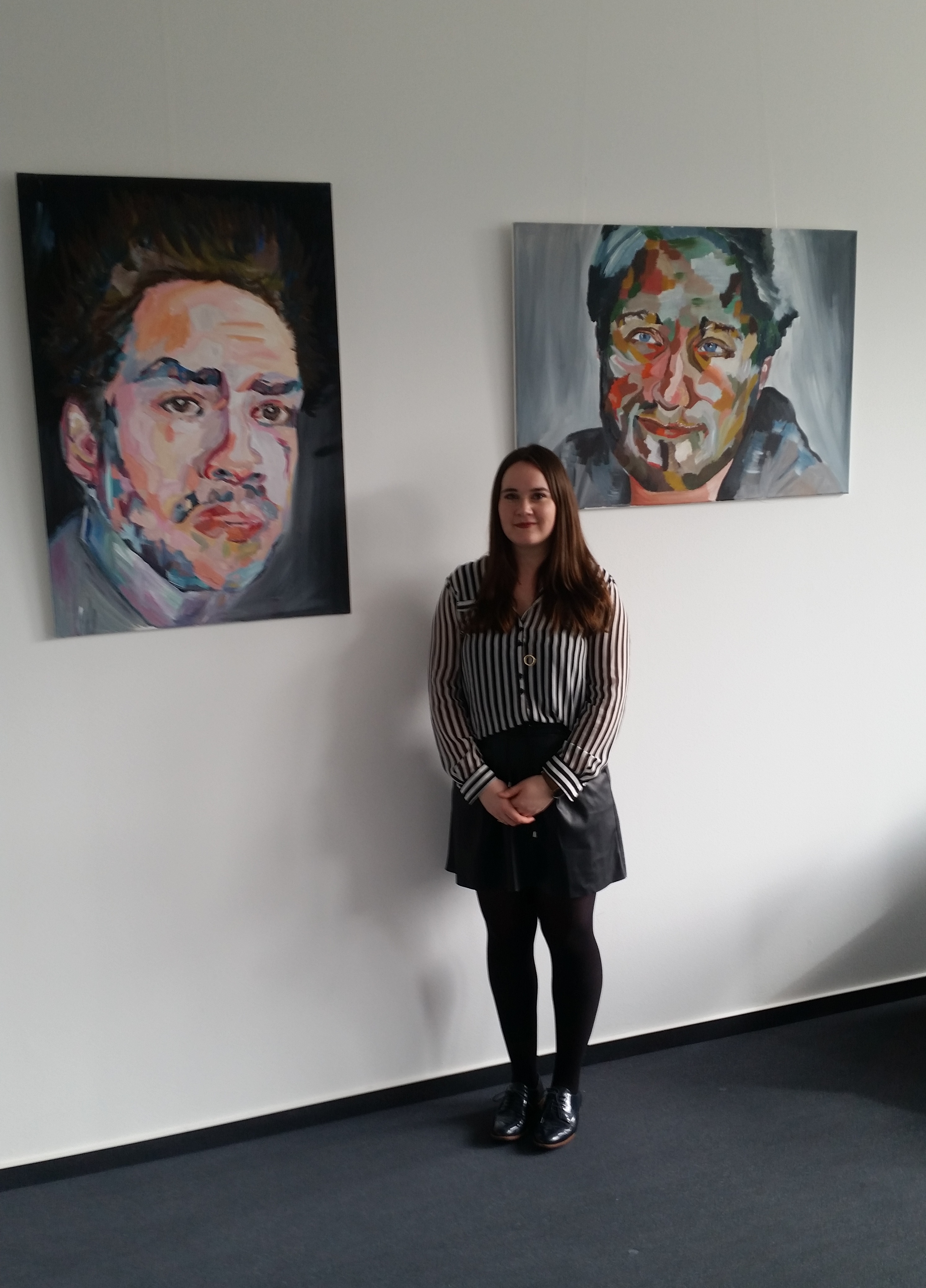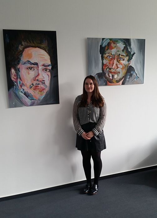 Der Blick auf ein Portrait, der Blick auf einen Menschen löst in uns automatisch ein Gefühl aus. Dies kann sowohl ein Gefühl des Erstaunens, der Erregung, aber auch Abneigung sein, denn nicht nur wir schauen das Porträt an, sondern es blickt auch uns an. Diese Intention verfolgt auch Katja Hardekopf mit ihrer Porträtreihe von Studierenden, die im Rahmen ihrer Staatsexamensarbeit angefertigt wurden und nun in Auszügen auf der Ebene B2 der Universität präsentiert werden.