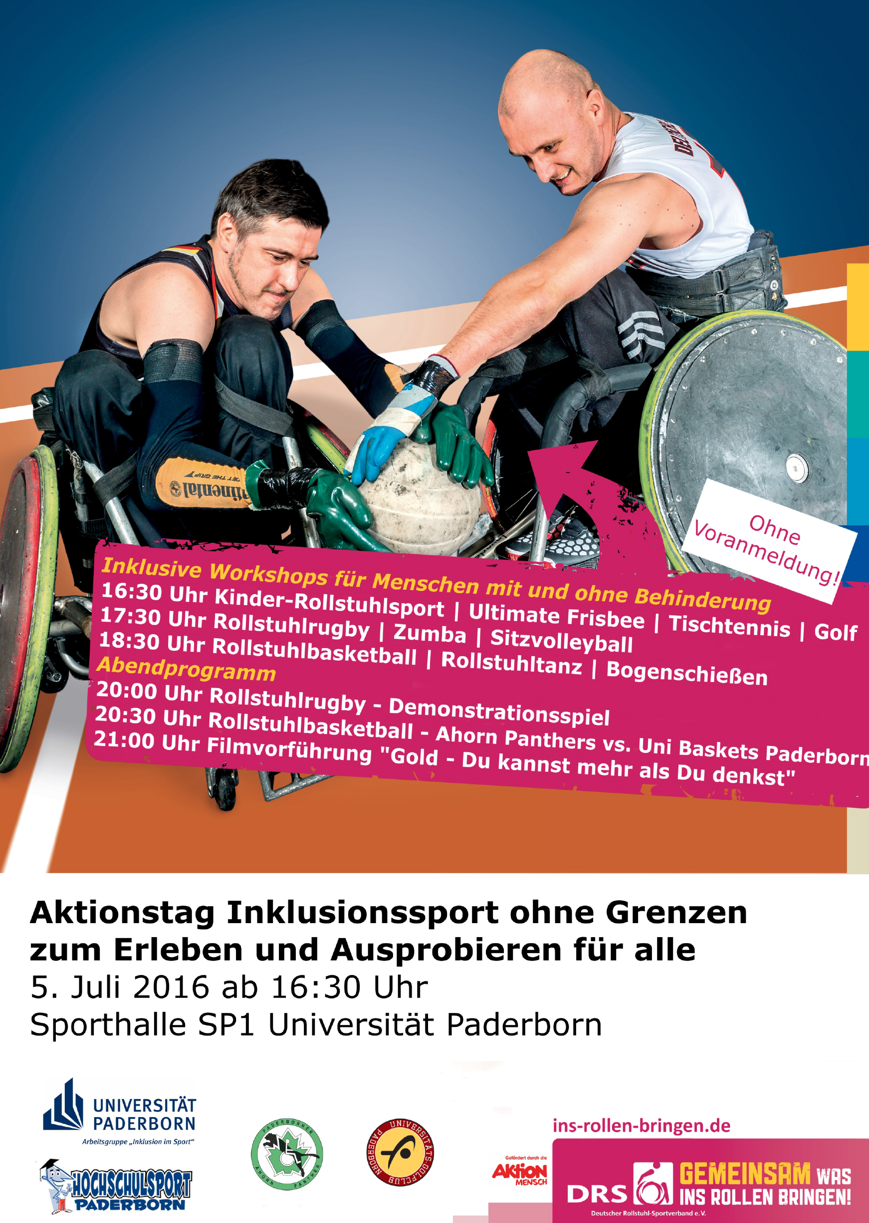 Unter dem Motto „Perspektivwechsel ermöglichen – Begegnungen schaffen“ wird in Kooperation mit dem Paderborner Sportverein Ahorn-Panther, der in diesem Jahr sein 30-jähriges Bestehen feiert, und dem deutschen Rollstuhl-Sportverband (DRS) die Gelegenheit geboten, Inklusionssport mit Menschen mit und ohne Behinderung zu erleben und auszuprobieren.