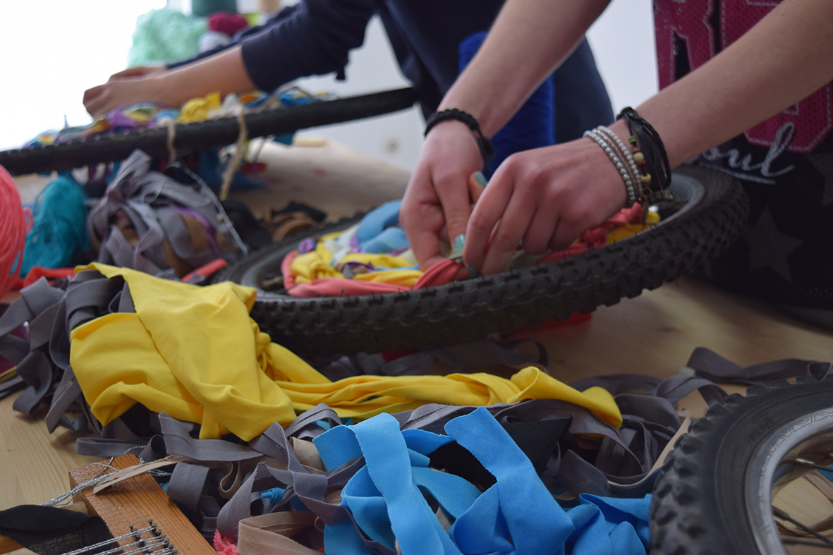 Das Projekt fand an vier Donnerstagen im Juni in der KleppArt - Räume für Textiles und Kultur statt. Ein reiches Materialangebot an Stoffen, Wolle und außergewöhnlichen Objekten, wie einzuwebenden (Fahr)Rädern, sollte alle Teilnehmer zu einer kreativen Arbeit inspirieren und das Potential der traditionellen Technik des Webens in ihrem zeitgemäßen inklusiven Kontext abbilden.