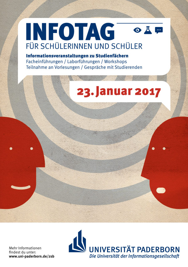 Am Montag, 23. Januar 2017, öffnet die Universität Paderborn im Rahmen der landesweiten „Wochen der Studienorientierung“ wieder ihre Türen für künftige Abiturientinnen und Abiturienten sowie andere Studieninteressierte. Beim jährlich stattfindenden INFOTAG können sich Studieninteressierte in zahlreichen Veranstaltungen über das Studienangebot an der Universität informieren.