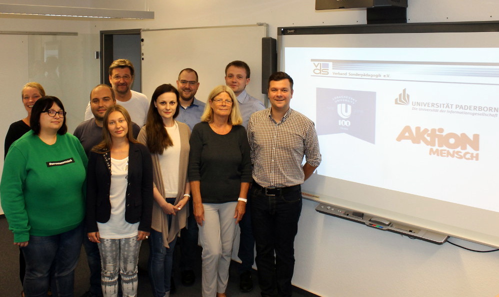 Im Fokus des Besuchs stand einerseits das Kennenlernen der Infrastrukturen für ein Studium mit Behinderung an der Universität Paderborn, andererseits die ersten Module einer Multiplikatorenschulung für die russischen Projektteilnehmer. Alexander Surin, Direktor des Zentrums „Studium mit Behinderung“ der Lobatschewski-Universität, zeigt sich begeistert: „Gemeinsam mit unseren deutschen Partnern konnten wir viele wichtige Ideen entwickeln. Die Fortbildungen und Besichtigungen hier in Deutschland waren für uns sehr wichtige Impulse, die wir mit nach Hause nehmen werden.“ Auch Marianne Schardt, Bundesgeschäftsführerin des Verbands Sonderpädagogik und Projektkoordinatorin, sieht in der Partnerschaft große Chancen: „Nur wenn wir auf Augenhöhe miteinander arbeiten und voneinander lernen“, so Schardt, „können wir zusammen die großen Herausforderungen bewältigen, vor denen wir bei der Umsetzung der Rechte von Menschen mit Behinderungen stehen – und dazu gehört selbstverständlich der gleichberechtigte und barrierefreie Zugang zum Studium an einer Hochschule“.