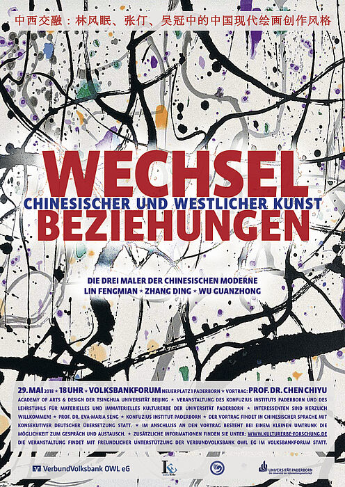 Als Professor an der Academy of Arts & Design der Tsinghua Universität in Peking ist Prof. Dr. Chen Chiyu ein ausgewiesener Experte auf dem Gebiet der chinesischen Zeichenkunst, der Kalligraphie sowie der modernen chinesischen Malerei. Aus einer kulturvergleichenden Perspektive wird Chen in seinem Vortrag die Gemeinsamkeiten und Unterschiede in der westlichen und chinesischen Kunst in den Blick nehmen und am Beispiel von drei prominenten Künstlern und deren Werken konkrete formale und inhaltliche Wechselbeziehungen aufzeigen. Der Vortrag findet in chinesischer Sprache mit deutscher Übersetzung durch Unterstützung des Konfuzius Institutes Paderborn statt.