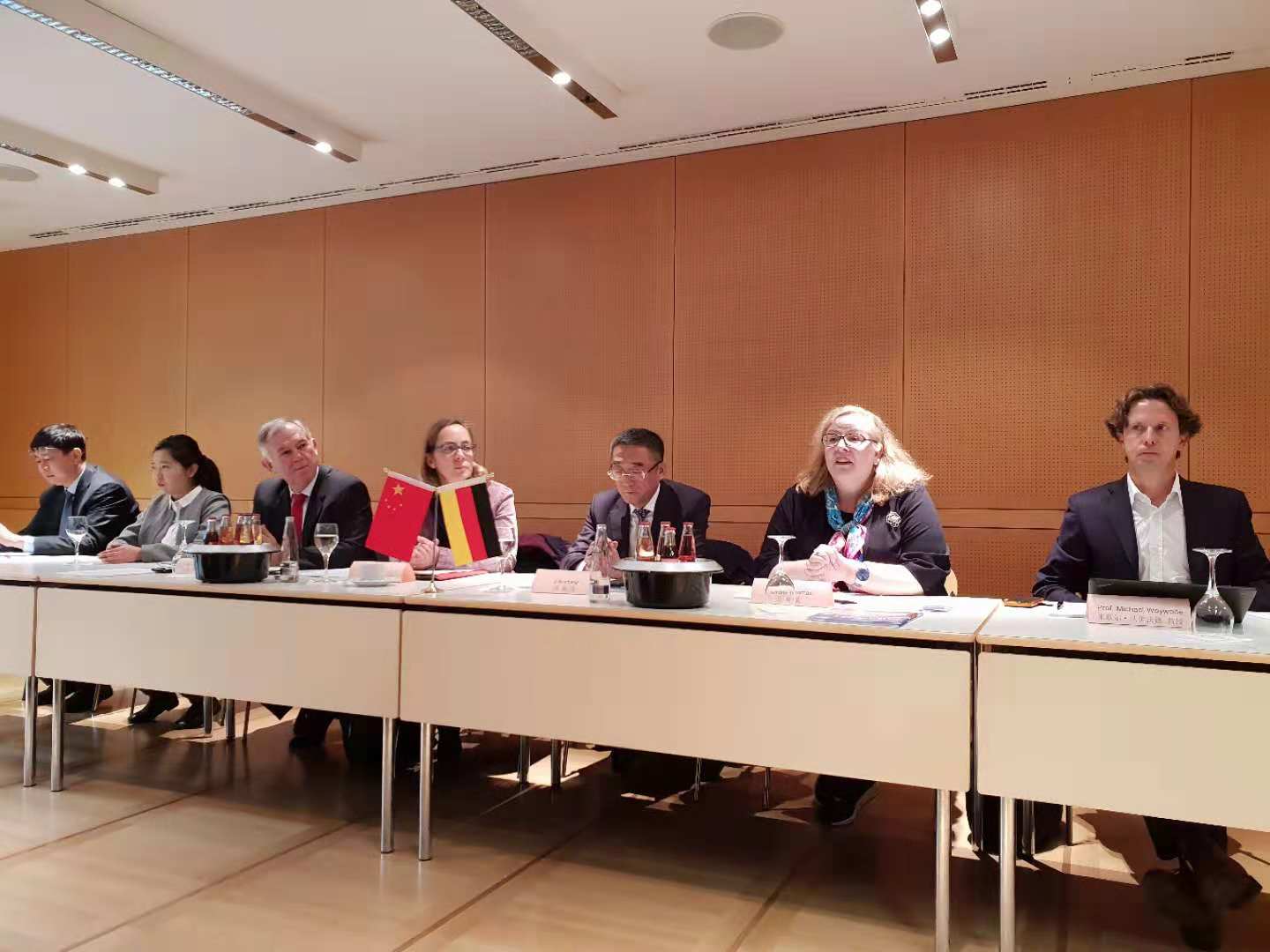 In einem weiteren Treffen in der Hans-Seidel-Stiftung nahmen Prof. Dr. Wolfgang Bremser, Deutscher Direktor des Chinesisch-Deutschen Campus, und Dr. Tran-Thien Hoang Trang, CDC-Koordinatorin, an dem Event „Family Business Inheritance and Sustainable Management of Sino-German Youth Enterpreneurs Dialogue“ teil. Organisiert von der Provinz Shandong, Department für Wirtschaft und Informationstechnologie, sowie der Hans-Seidel-Stiftung, bot diese Veranstaltung eine Plattform zum Aufbau und der Erweiterung von Netzwerken und Kooperationen zwischen mittelständischen Firmen aus Deutschland und China. Zu den Ehrengästen zählten unter anderem Binchang Ji, Minister für Wirtschaft und Informationstechnologie der Shandong Provinz, Ulrike Hoffmann, Bayrisches Staatsministerium für Wirtschaft und Medien, Energie und Technologie, und Dr. Eduard Sailer, ehemaliger Geschäftsführer der Firma Miele.