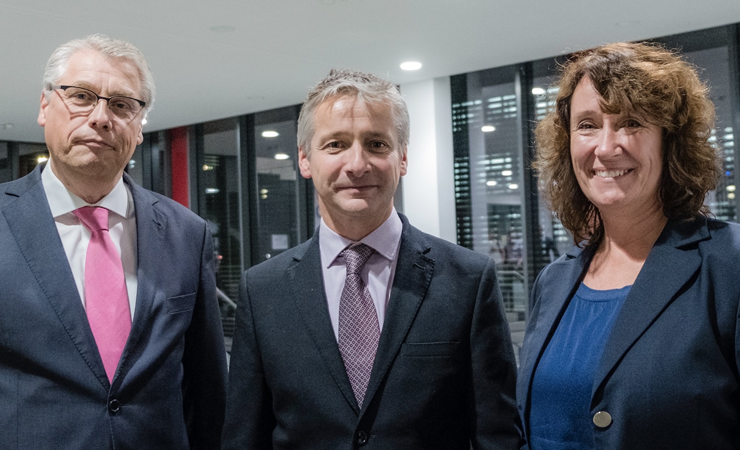Foto (Universität Paderborn): V. l. BIBB-Präsident Prof. Dr. Friedrich Hubert Esser, Prof. Dr. Hubert Ertl und Prof. Dr. Caren Sureth-Sloane, Dekanin der Fakultät für Wirtschaftswissenschaften der Uni-versität Paderborn.