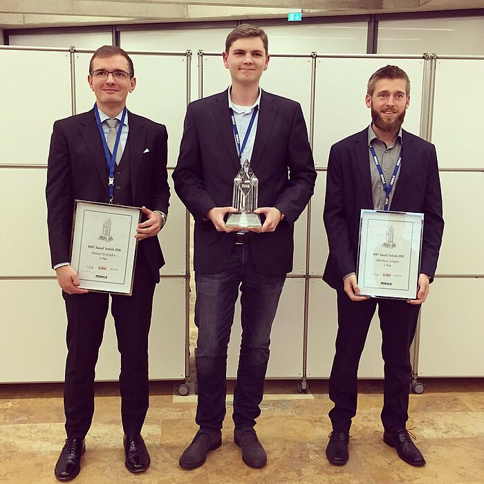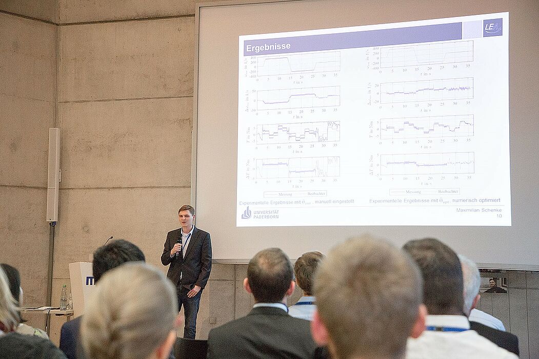 Maximilian Schenke, Student im Masterstudiengang Elektrotechnik der Universität Paderborn, hat im November den 1. Preis des MINT-Awards Technik 2018 im Zuge einer Festveranstaltung beim Automobilzulieferer Mahle in Stuttgart entgegengenommen. Seine Bachelorarbeit mit dem Titel „Untersuchung des Erweiterten Kalman-Filters zur Fluss- und Drehzahlbeobachtung im Kontext der feldorientierten Regelung von Asynchronmotoren“ hat die Fachjury aus Mahle-Führungskräften und Professoren überzeugt und ist mit einem Preisgeld von 2.000 Euro dotiert. Der Paderborner Student hat seine Bachelorarbeit im Fachgebiet Leistungselektronik und Elektrische Antriebstechnik (LEA) angefertigt und wurde von Dr.-Ing. Oliver Wallscheid betreut.
