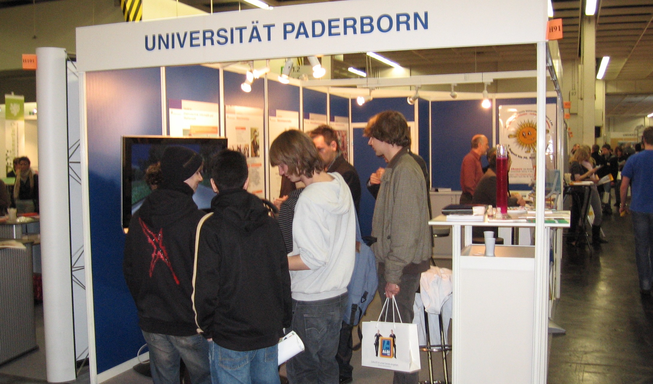 In Köln fand am vergangenen Freitag und Samstag die Messe Einstieg ABI mit 342 Ausstellern aus dem In- und Ausland statt. Überwiegend waren Bildungseinrichtungen und Hochschulen vertreten. Der Messeauftritt der Universität Paderborn war dabei äußerst erfolgreich. Von den etwa 27.000 Besuchern waren viele am Studienangebot in Paderborn interessiert. Sie wurden von den Beratern der Zentralen Studienberatung, dem Studierendensekretariat und fachspezifischer Unterstützung aus den Fakultäten engagiert beraten und mit umfangreichem Informationsmaterial versorgt. Vielen Studieninteressenten wurde Paderborn als attraktiver Studienort bekannt gemacht.
