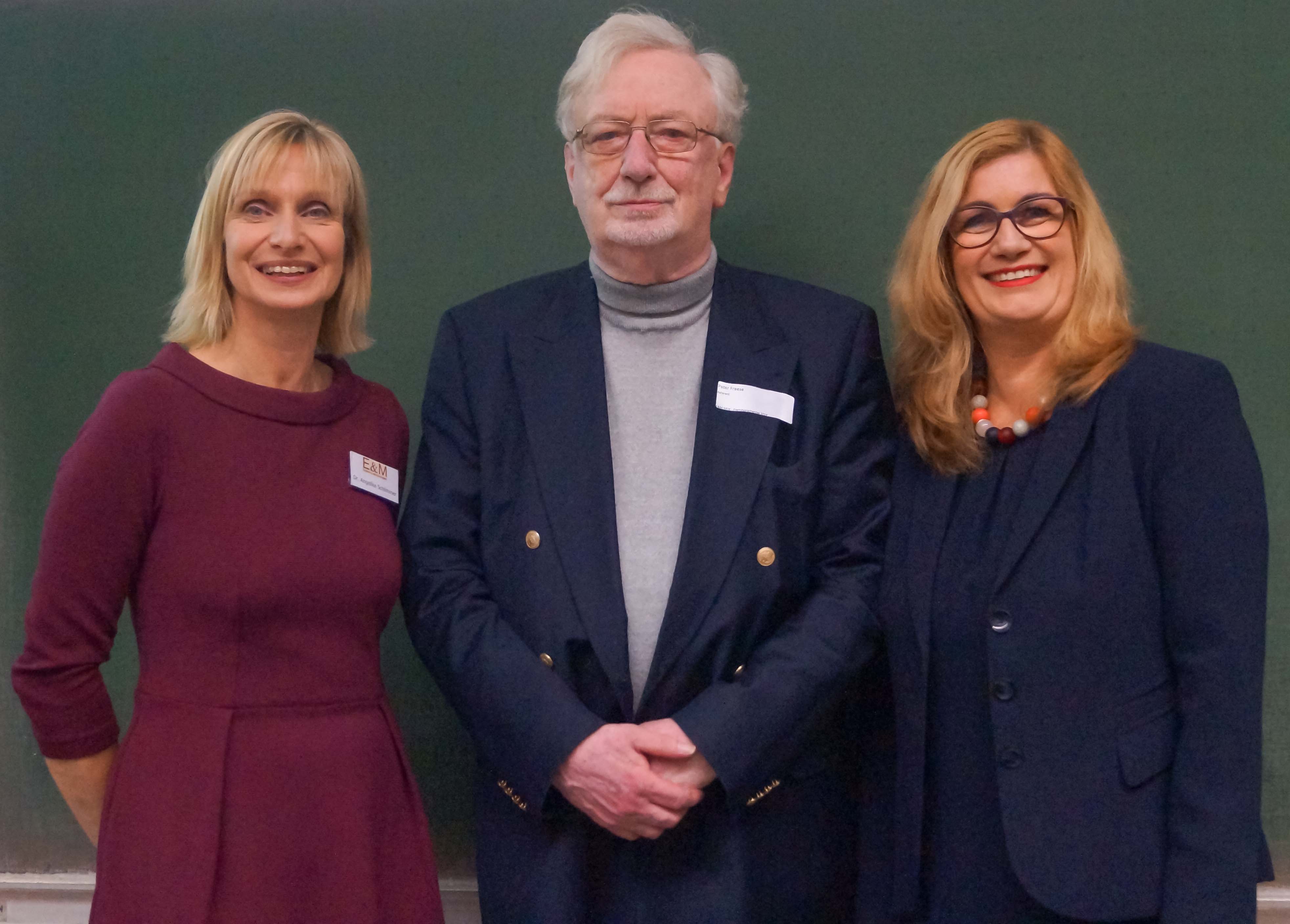 Foto (PLAZ, Björn Heerdegen): Freuten sich über einen erneut gelungenen Fremdsprachentag an der Universität Paderborn: V. l. Dr. Angelika Schlimmer, Prof. em. Dr. Dr. h.c. mult. Peter Freese und Monika Kabst.