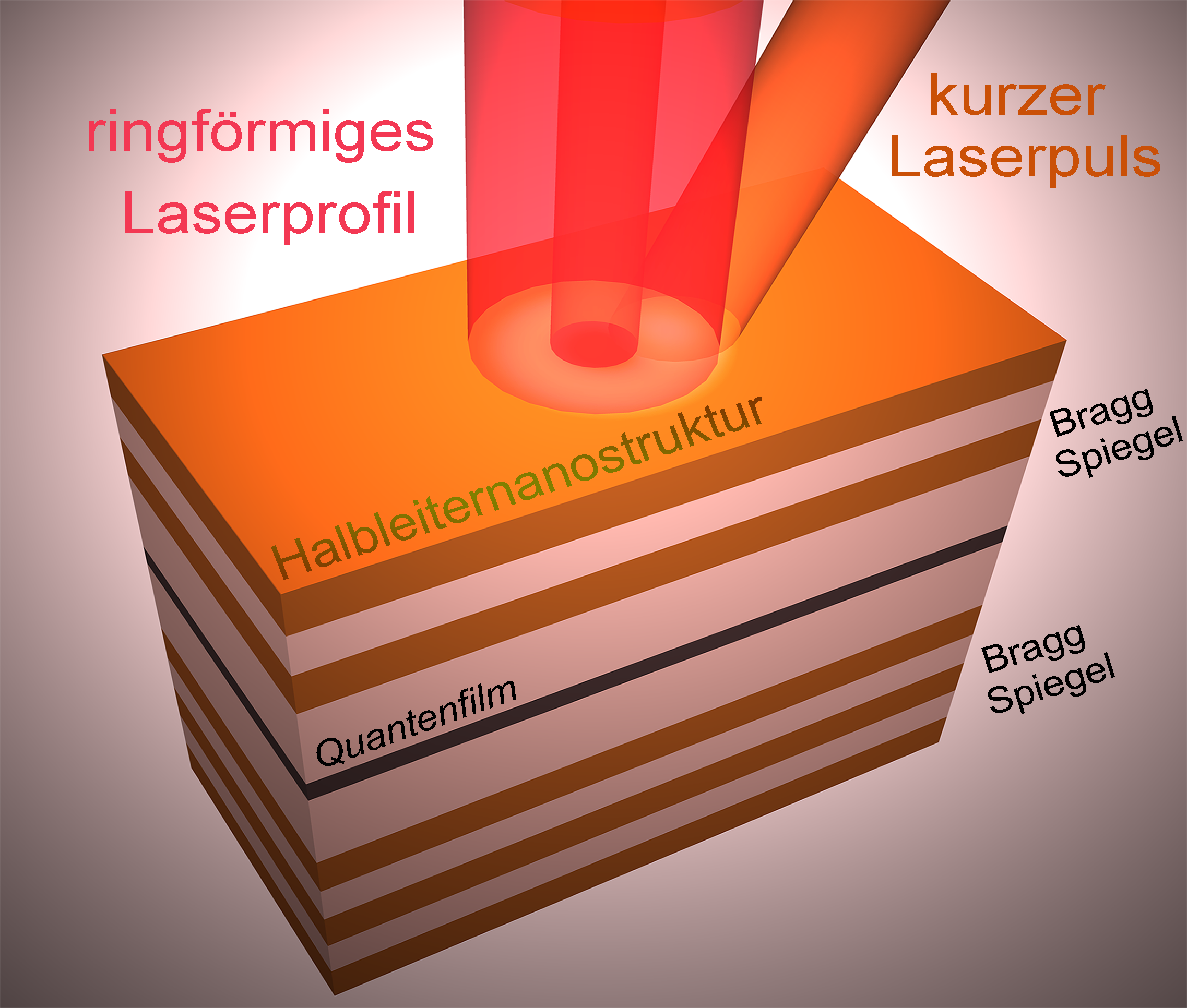 Abbildung (Universität Paderborn): Die verwendete Halbleiternanostruktur und optische Anregung.