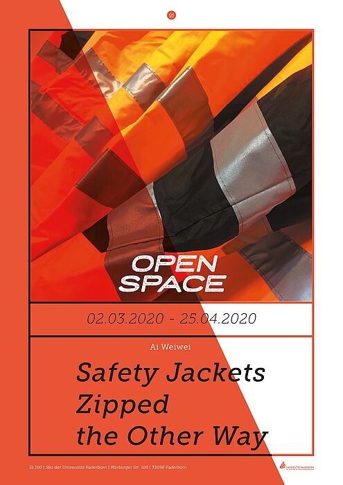 Das Fach Kunst zeigt in seinem kleinen Ausstellungsraum „OPEN SPACE“ im Silo-Gebäude vom 2. März bis 25. April eine Arbeit des chinesischen Künstlers Ai Weiwei (montags bis freitags von 10 bis 18 Uhr, Raum S1.100). „Safety Jackets Zipped the Other Way“ ist ein Multiple, das Ai Weiwei in Kooperation mit der Baumarktkette Hornbach realisierte. Die Arbeit ist mehrteilig und besteht aus einzelnen Warn- bzw. Schutzwesten, die durch Reißverschlüsse miteinander verbunden sind. Die Kunstbetrachter sind aufgefordert, die Kleidungsstücke nach den Anweisungen des Künstlers neu miteinander zu kombinieren und zu arrangieren. Die ursprüngliche Bedeutung der Alltagskleidung wird dadurch zerstört und erhält durch das bewusste Eingreifen, Verändern und Präsentieren im Schauzusammenhang eine neue Funktion. Durch Legen oder Hängen transformiert sie hier in eine weiche und zugleich temporäre Skulptur, die zum Betrachten, Erkunden und Berühren einlädt.