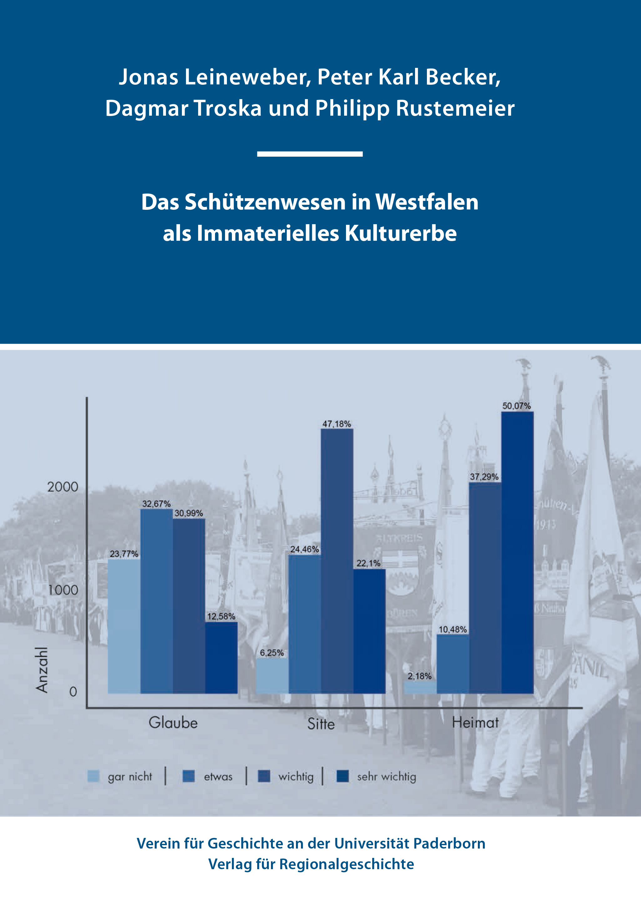 Seit vier Jahren beschäftigen sich Wissenschaftler*innen der Universität Paderborn in Kooperation mit der Warsteiner Brauerei im Forschungsprojekt „Tradition im Wandel“ mit dem Schützenwesen als immaterielles Kulturerbe. Nun wurden die Ergebnisse der umfangreichen wissenschaftlichen Studien zum Schützenwesen in der Region veröffentlicht. Die Publikation mit dem Titel „Das Schützenwesen in Westfalen als Immaterielles Kulturerbe“, herausgegeben vom Verein für Geschichte an der Universität Paderborn, ist ab sofort im Buchhandel erhältlich. Die Publikation erscheint in der Schriftenreihe „Paderborner Beiträge zur Geschichte“ im Verlag für Regionalgeschichte.