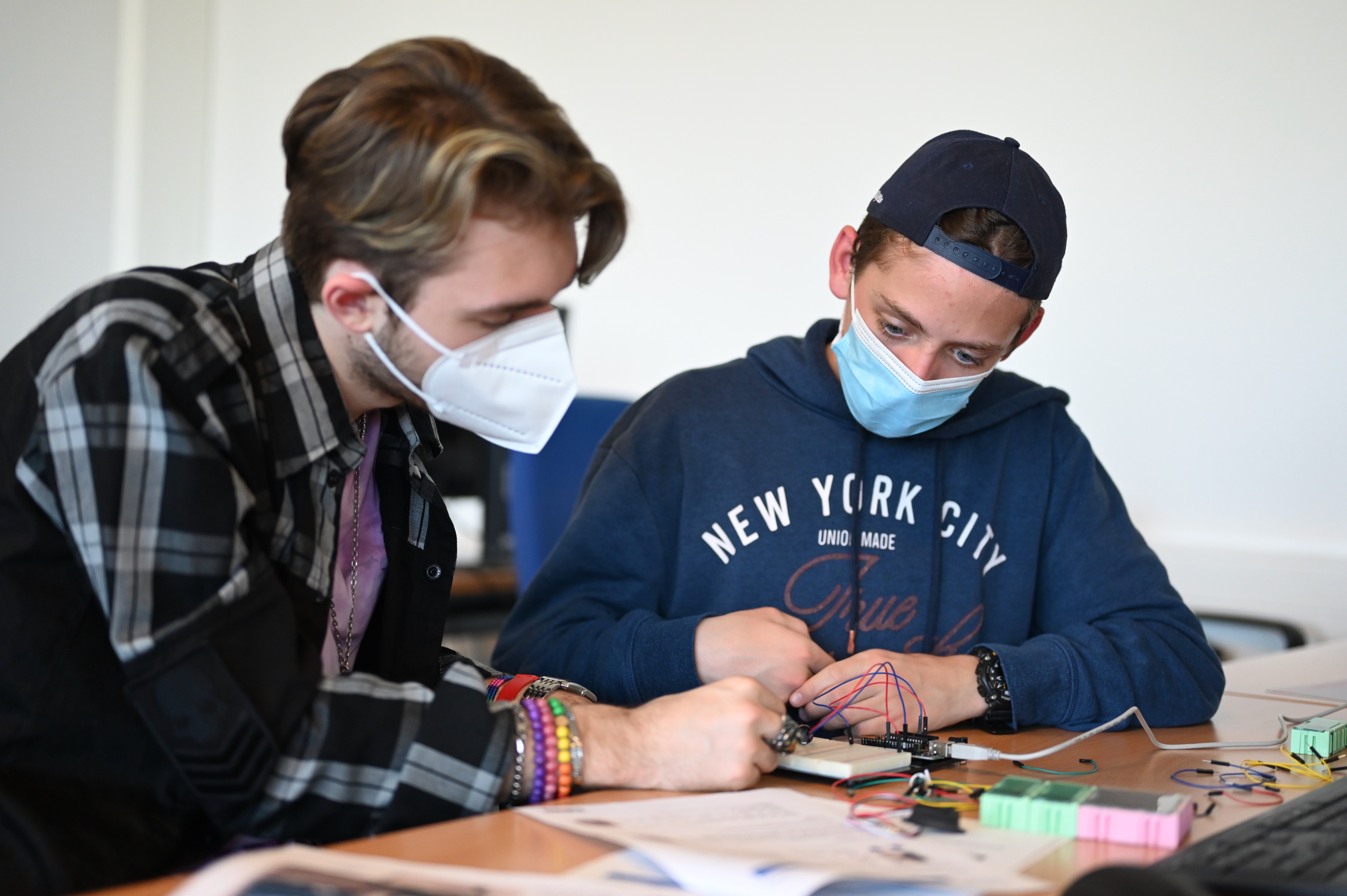Im „girls only“-Workshop „Die Sonne als Antrieb“ aus der Physik haben die Schülerinnen gemeinsam ein kleines solargetriebenes Auto gebaut. Das Ziel: eine Strecke von fünf Metern Länge möglichst schnell zurückzulegen. Zudem konnten die Teilnehmerinnen im Informatikworkshop „Die eigene Umwelt erforschen: Analyse von Umweltdaten mit Jupyter Notebooks“ erfahren, wie Feinstaub an der Hauptstraße bestimmt wird und die Datenauswertung von Umweltdaten das eigene Leben verbessern kann.