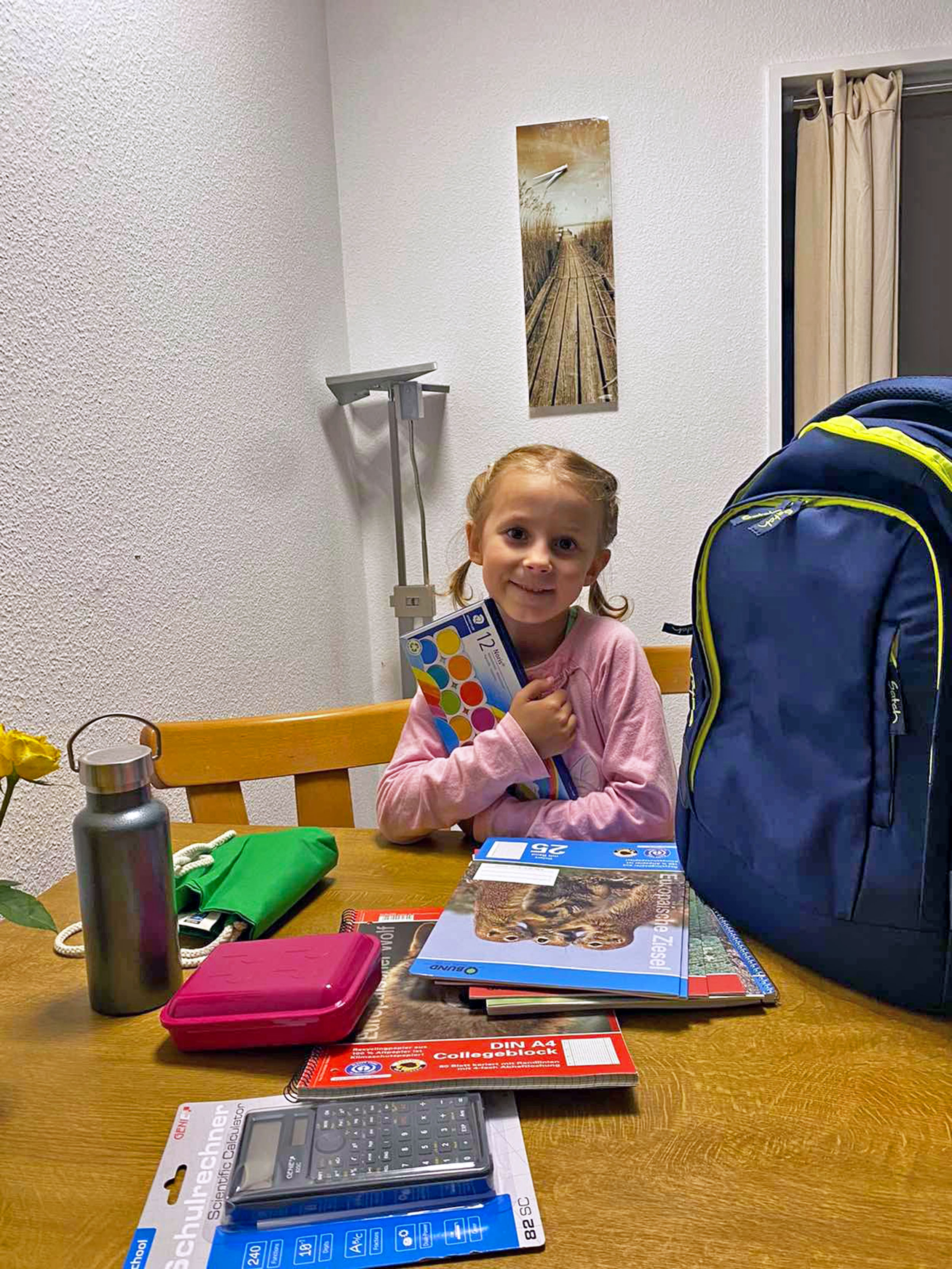 Foto (Olena Shinkar): Nina Shinker wächst in einer ukrainischen Großfamilie auf und übernimmt häufig Sachen von ihren älteren Geschwistern. Umso größer war ihre Freude über die neuen Schulmaterialien.