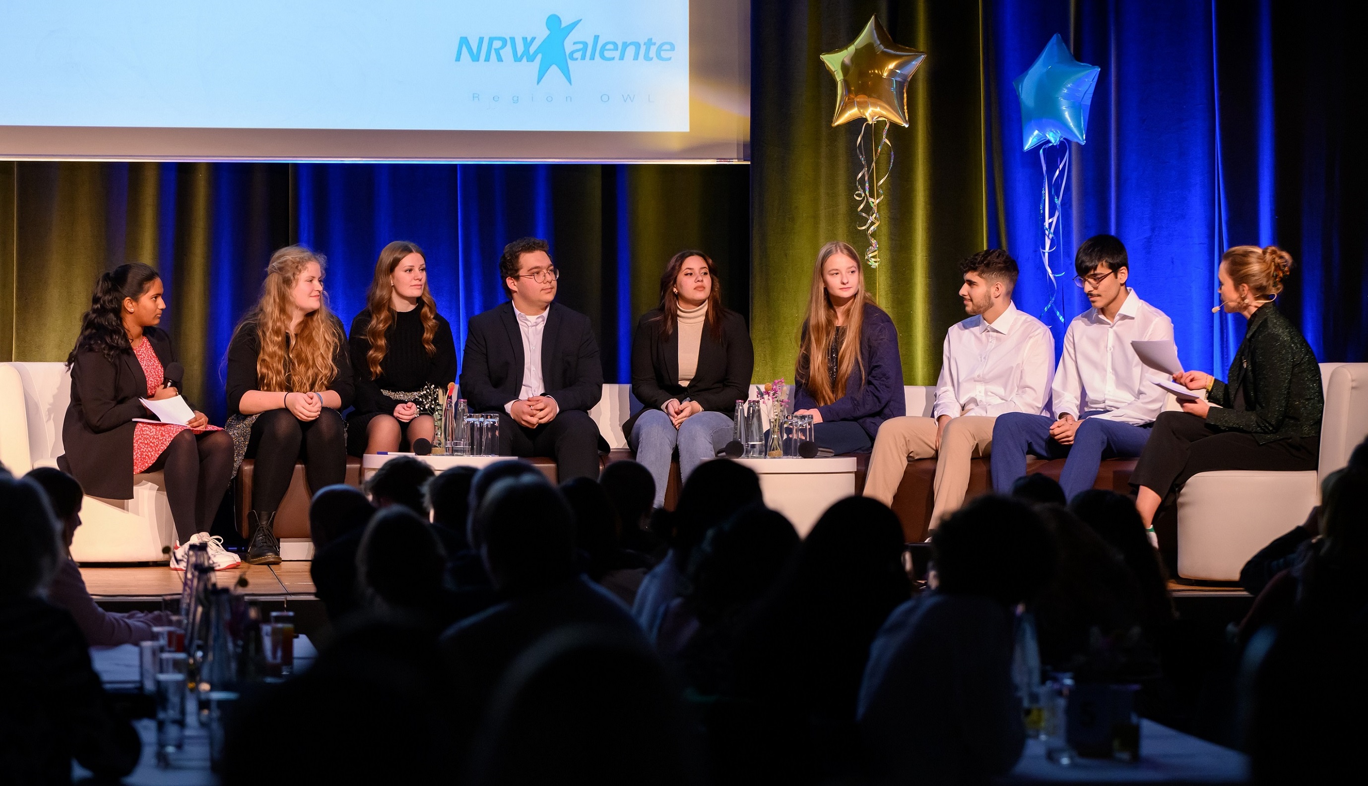 The aim of the ‘NRWTalent – Region OWL’ student scholarship programme is to offer the best possible educational opportunities, regardless of social and economic circumstances. A ceremony and celebration was held in the Stadthalle Gütersloh on Saturday 19 November to accept 50 students from Ostwestfalen-Lippe onto the programme. Achievement-oriented, motivated and socially engaged young people from year 8 upwards at all school types will be helped to explore their potential, tap it fully and shape their own educational and professional careers.