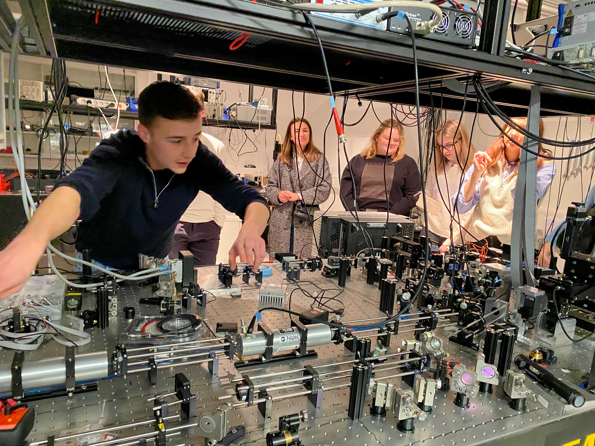 Auch drei Ausflüge standen auf dem Programm. Bei der Physikalisch-Technischen Bundesanstalt in Braunschweig lernten die Teilnehmenden etwas über Präzisionsmessungen an Nanostrukturen und deren Herstellung, Atomuhren sowie Glasfaserübertragung von Zeitsignalen. Am Max-Planck-Institut für Multidisziplinäre Naturwissenschaften in Göttingen besuchten sie die Abteilung des Nobelpreisträgers Stefan Hell zum Thema STED-Mikroskopie und thematisierten Kryo-TEM von Proteinen in der Abteilung von Patrick Cramer, dem geschäftsführenden Direktor des Instituts, sowie ultraschnelle Dynamik im TEM in der Abteilung des Physikers Claus Ropers. Einen Einblick in die Geschichte und Zukunft der Informationstechnik erhielten die Studierenden im weltweit größten Computermuseum, dem Heinz-Nixdorf-Museumsforum. Abgerundet wurde die Woche mit einer Stadtführung durch Paderborn und dem Besuch des Paderborner Weihnachtsmarktes.
